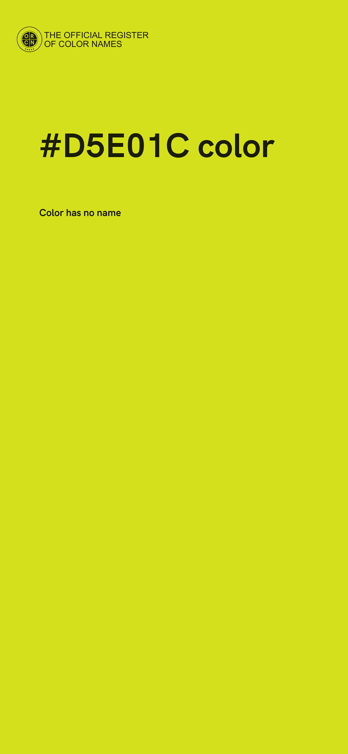 The digital color HEX #D5E01C belongs to the Yellow Color Family featuring High Saturation (Saturation Family) and Light (Brightness Family).