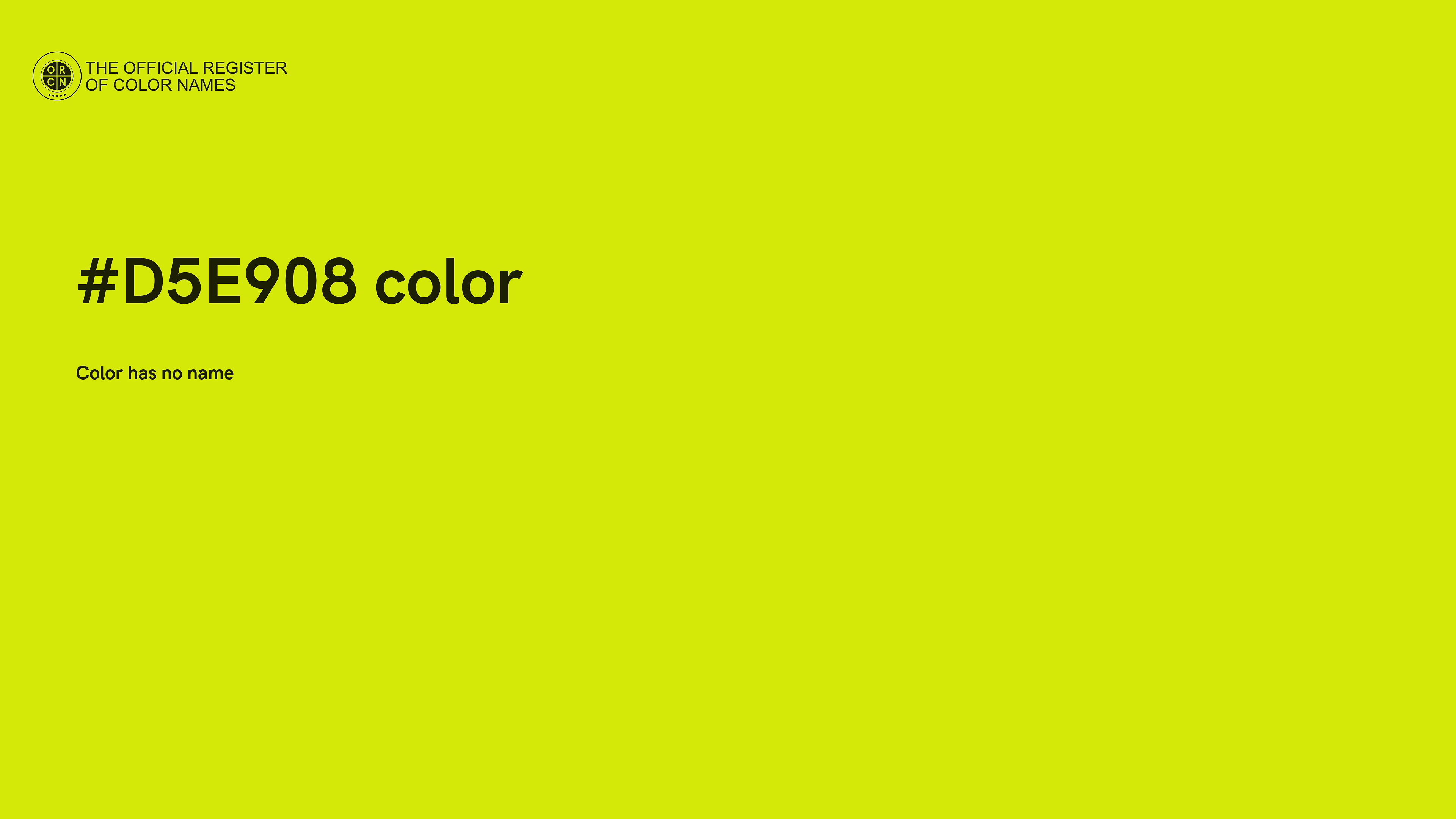 The digital color HEX #D5E908 belongs to the Yellow Color Family featuring Full Saturation (Saturation Family) and Light (Brightness Family).