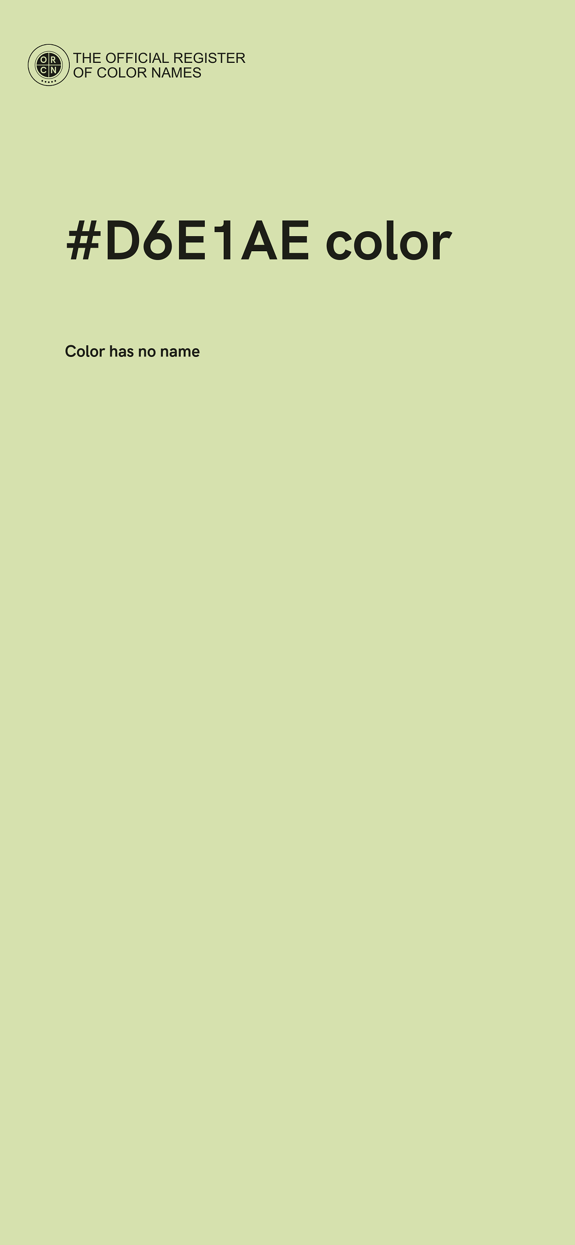 The digital color HEX #D6E1AE belongs to the Yellow Color Family featuring Moderate Saturation (Saturation Family) and Very Light (Brightness Family).
