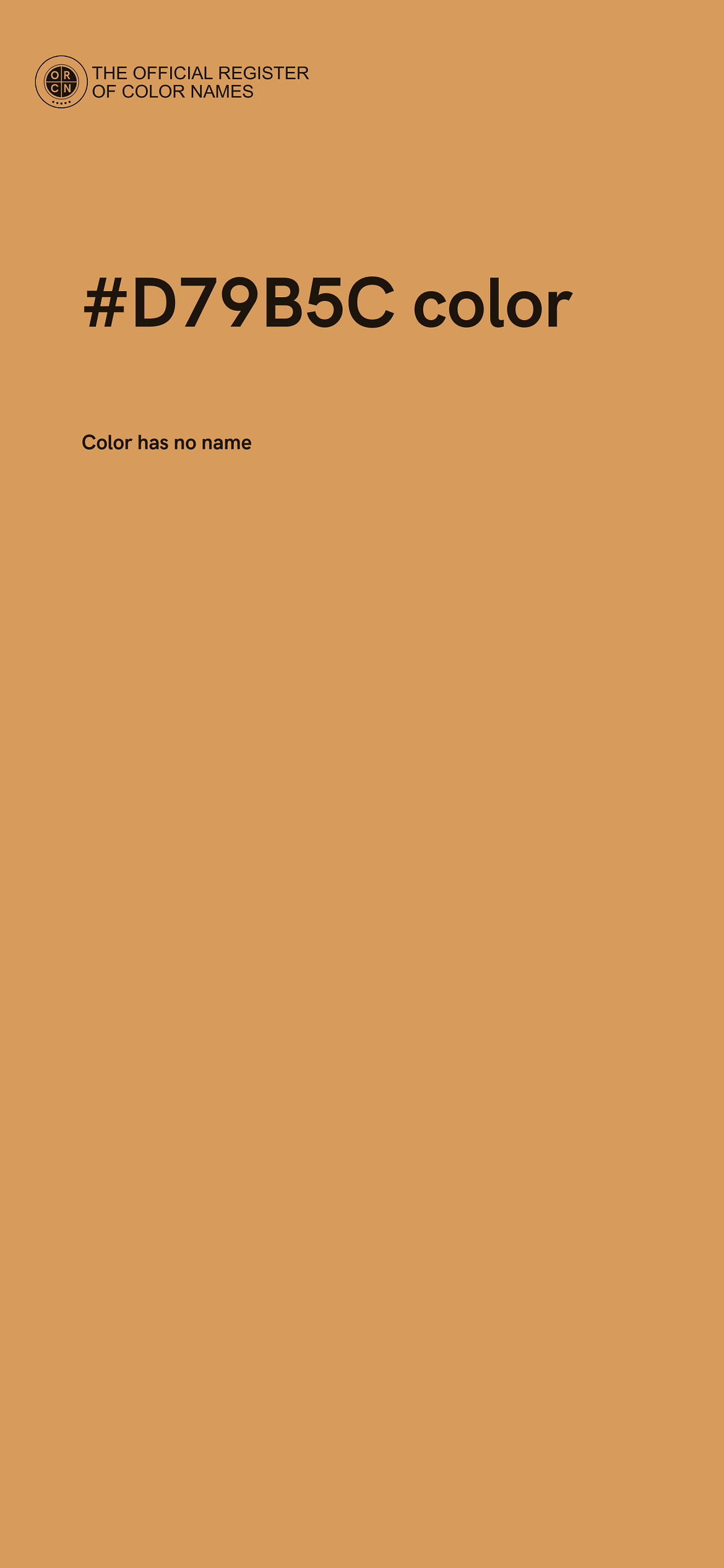 For printing in non digital world, #D79B5C is represented in CMYK as 0 Cyan, 24 Magenta, 48 Yellow, and 16 Black (Key) (C:0 M:24 Y:48 K:16).