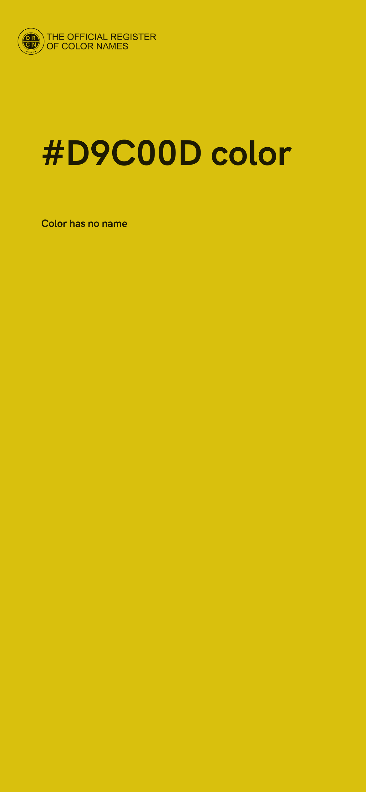 The digital color HEX #D9C00D belongs to the Yellow Color Family featuring Full Saturation (Saturation Family) and Light (Brightness Family).