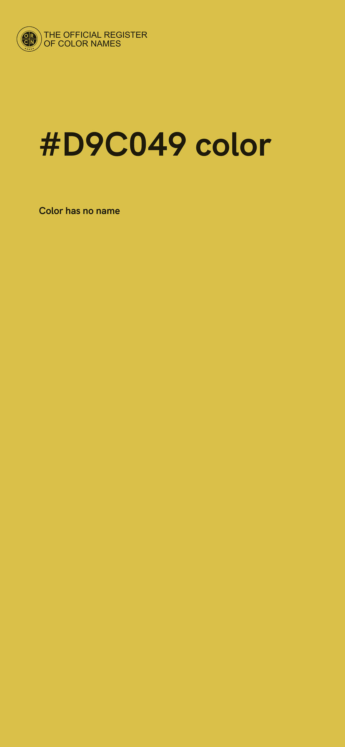 The digital color HEX #D9C049 belongs to the Yellow Color Family featuring High Saturation (Saturation Family) and Light (Brightness Family).