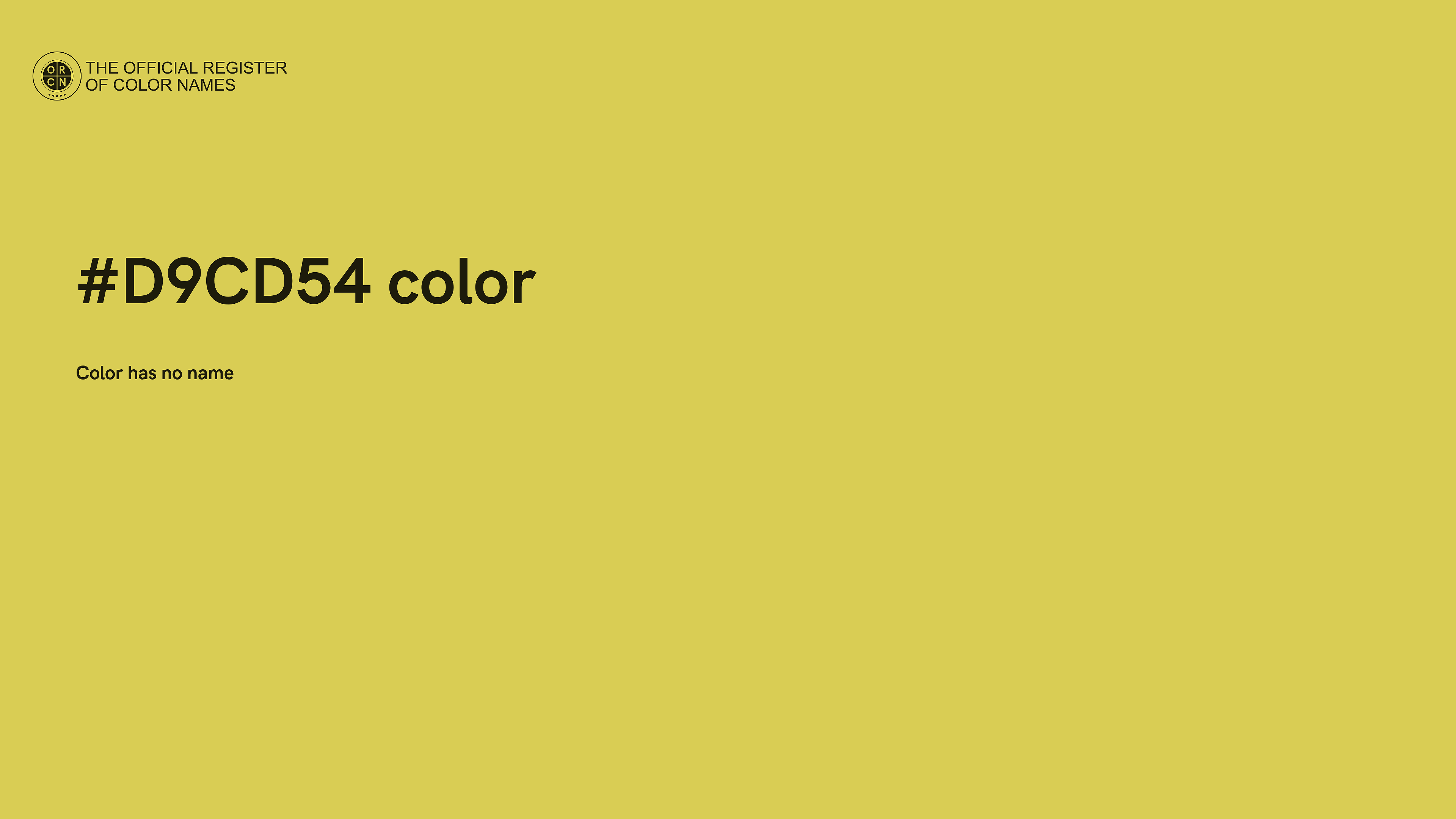 For printing in non digital world, #D9CD54 is represented in CMYK as 0 Cyan, 5 Magenta, 52 Yellow, and 15 Black (Key) (C:0 M:5 Y:52 K:15).