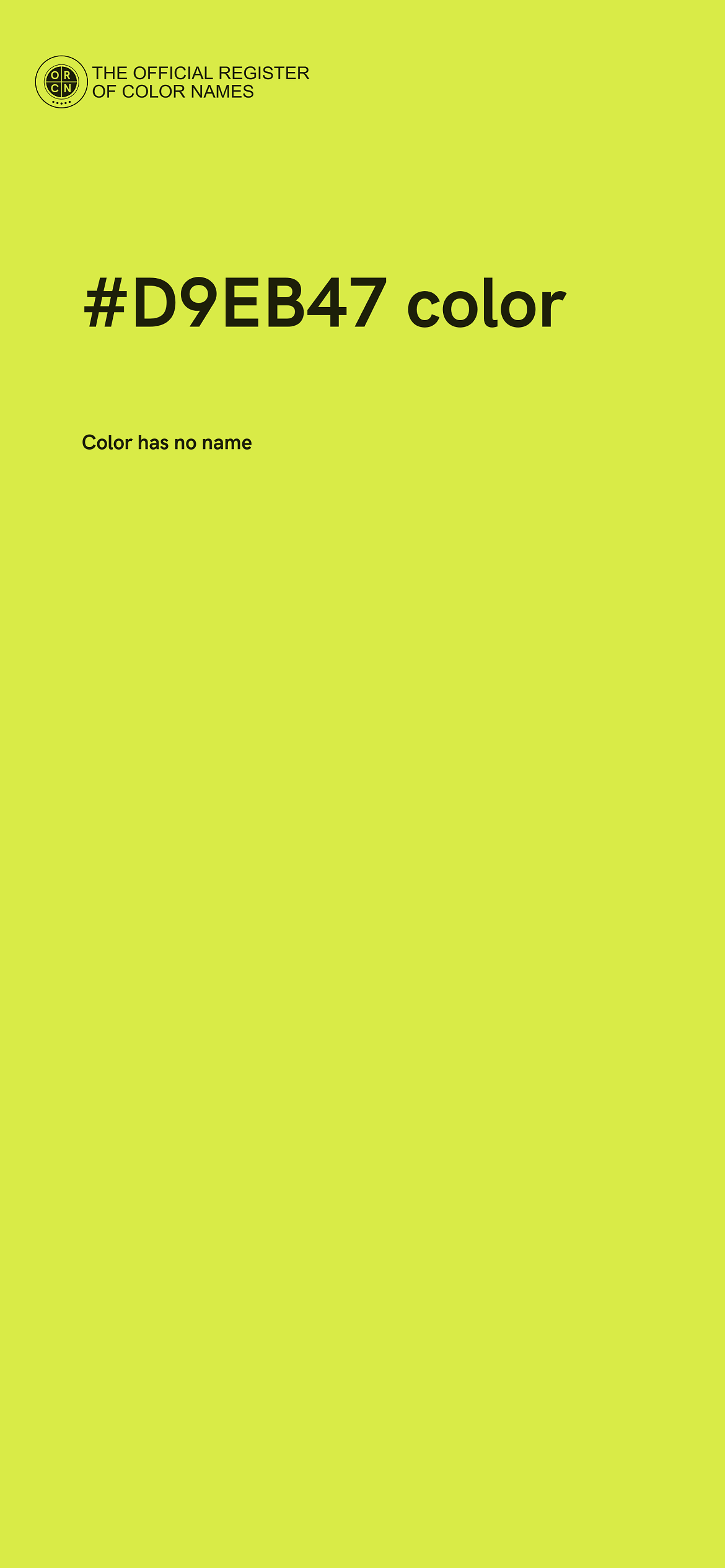 For printing in non digital world, #D9EB47 is represented in CMYK as 7 Cyan, 0 Magenta, 64 Yellow, and 8 Black (Key) (C:7 M:0 Y:64 K:8).