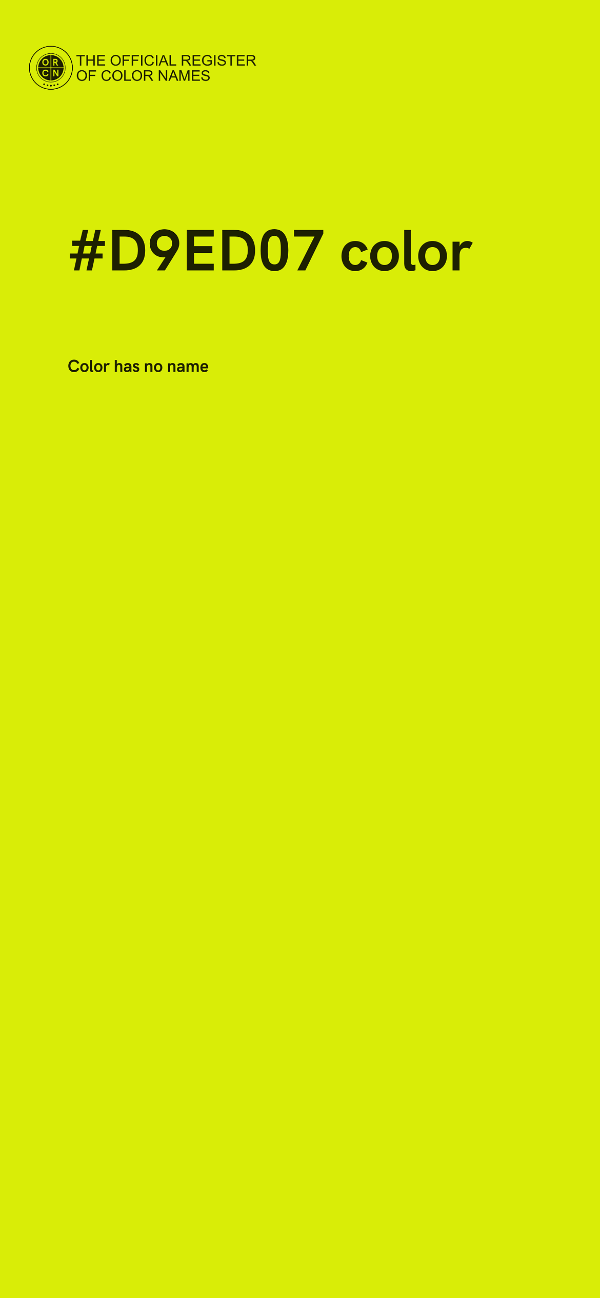 For printing in non digital world, #D9ED07 is represented in CMYK as 8 Cyan, 0 Magenta, 90 Yellow, and 7 Black (Key) (C:8 M:0 Y:90 K:7).