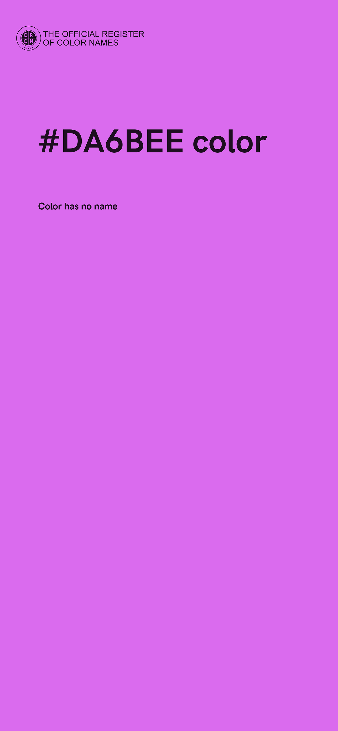 For printing in non digital world, #DA6BEE is represented in CMYK as 8 Cyan, 51 Magenta, 0 Yellow, and 7 Black (Key) (C:8 M:51 Y:0 K:7).