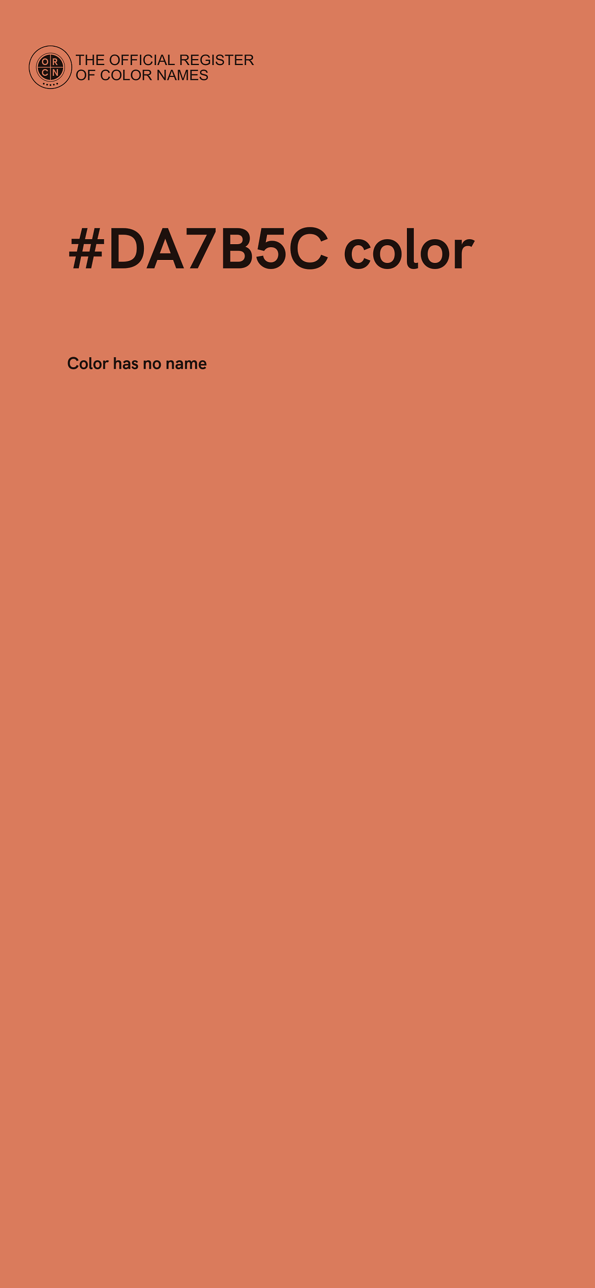 For printing in non digital world, #DA7B5C is represented in CMYK as 0 Cyan, 37 Magenta, 49 Yellow, and 15 Black (Key) (C:0 M:37 Y:49 K:15).