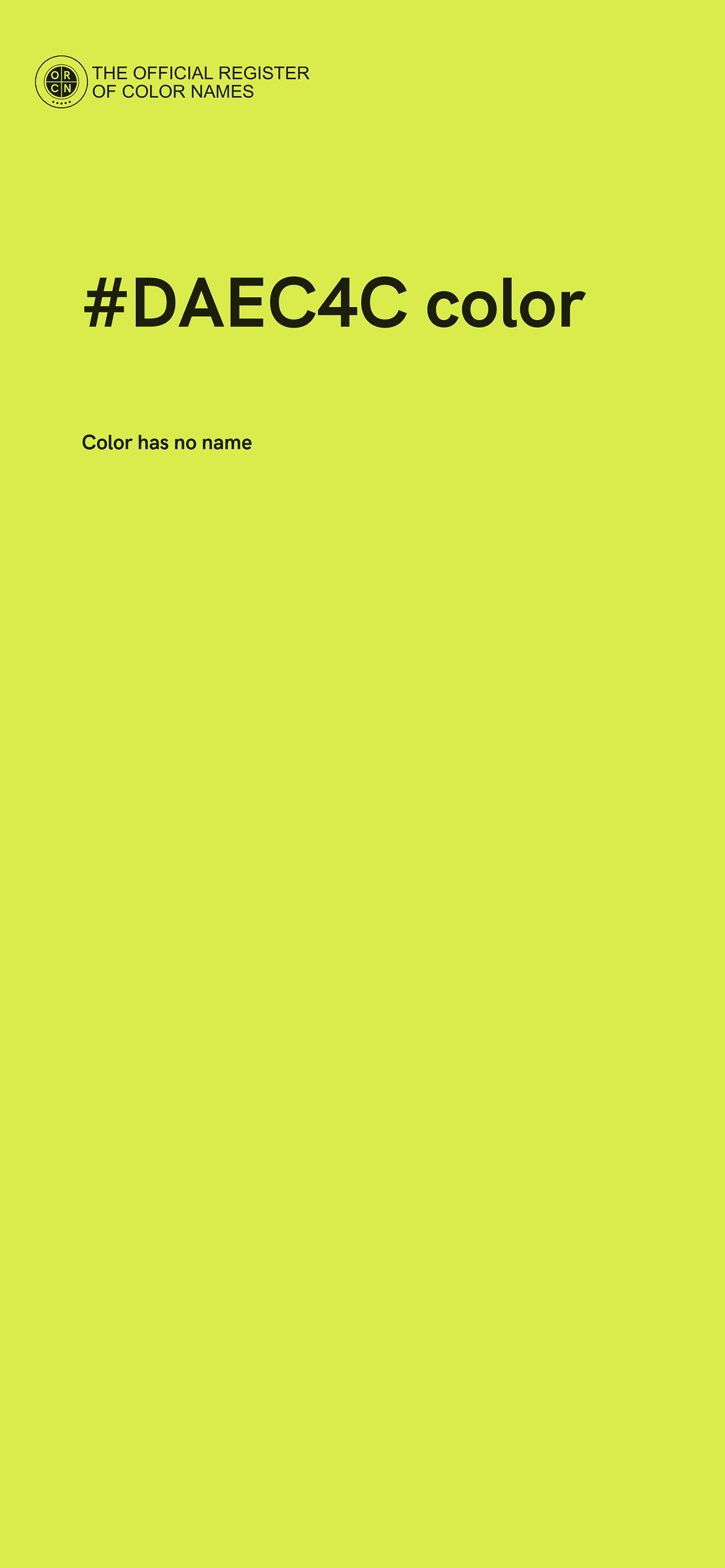 For printing in non digital world, #DAEC4C is represented in CMYK as 7 Cyan, 0 Magenta, 63 Yellow, and 7 Black (Key) (C:7 M:0 Y:63 K:7).