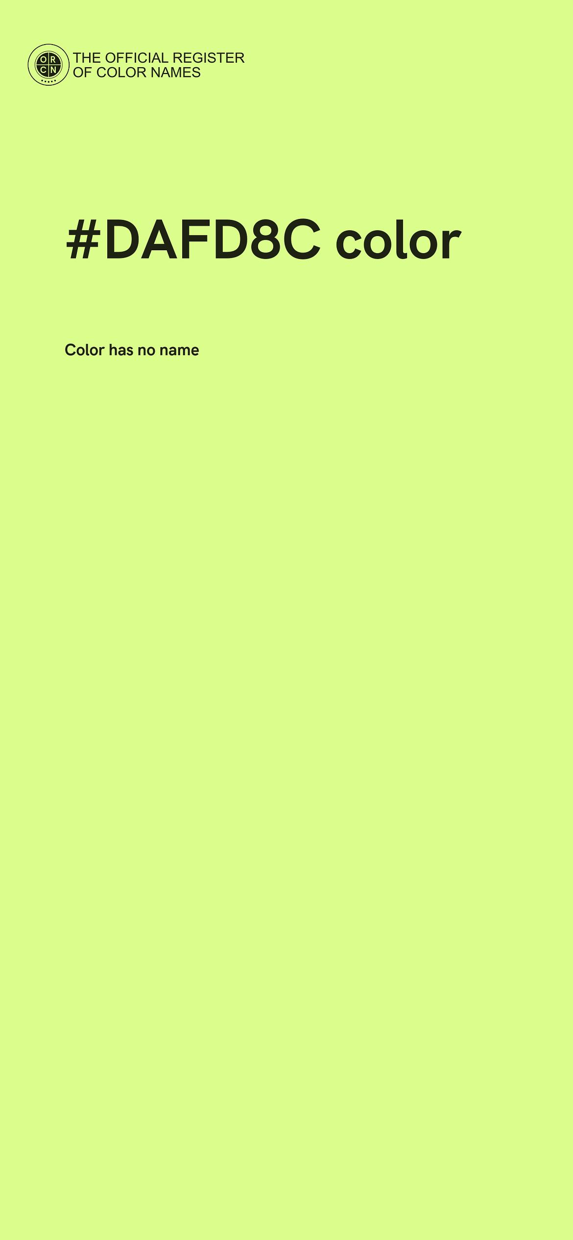 The digital color HEX #DAFD8C belongs to the Chartreuse Color Family featuring Full Saturation (Saturation Family) and Very Light (Brightness Family).