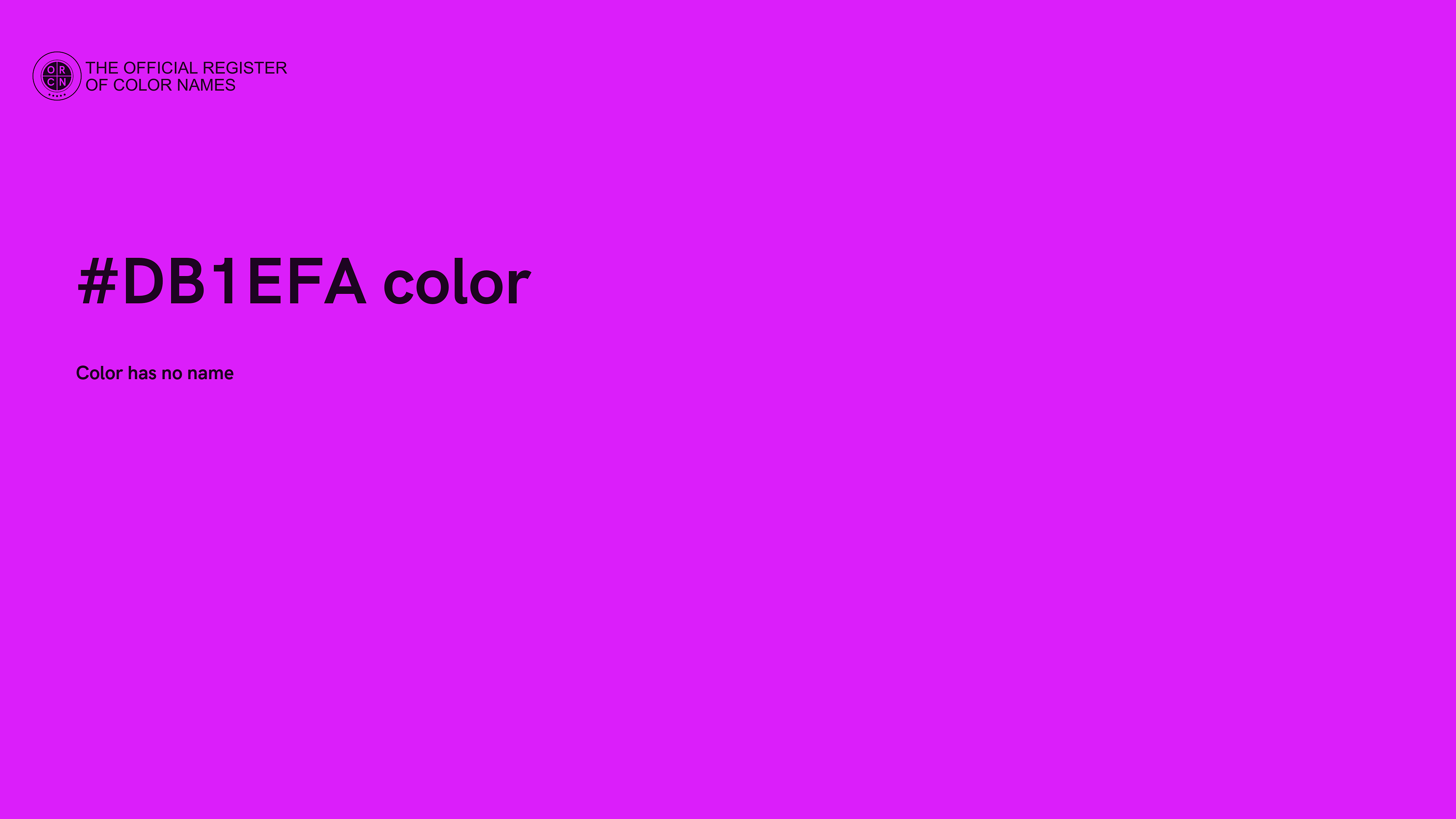 For printing in non digital world, #DB1EFA is represented in CMYK as 12 Cyan, 86 Magenta, 0 Yellow, and 2 Black (Key) (C:12 M:86 Y:0 K:2).