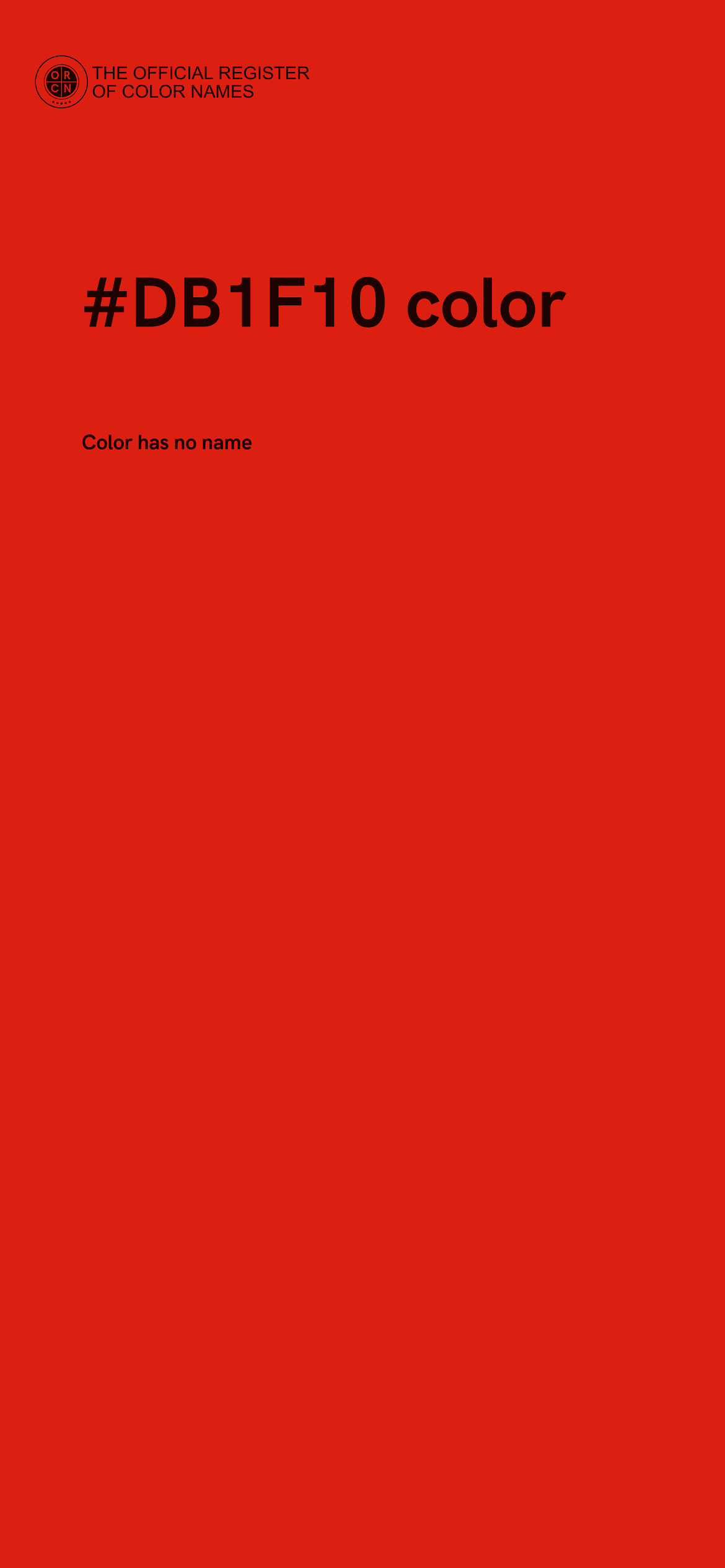The digital color HEX #DB1F10 belongs to the Red Color Family featuring Full Saturation (Saturation Family) and Light (Brightness Family).