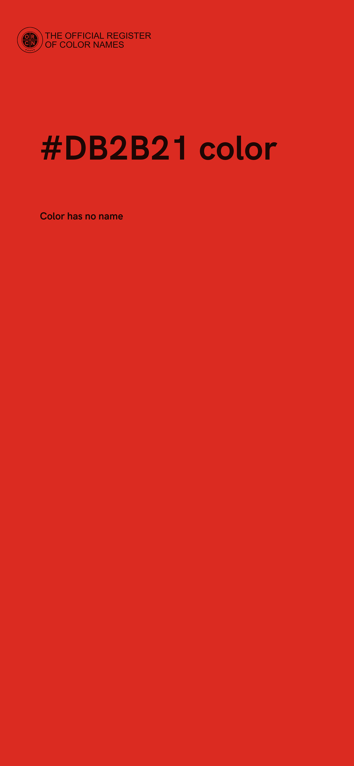 The digital color HEX #DB2B21 belongs to the Red Color Family featuring High Saturation (Saturation Family) and Light (Brightness Family).