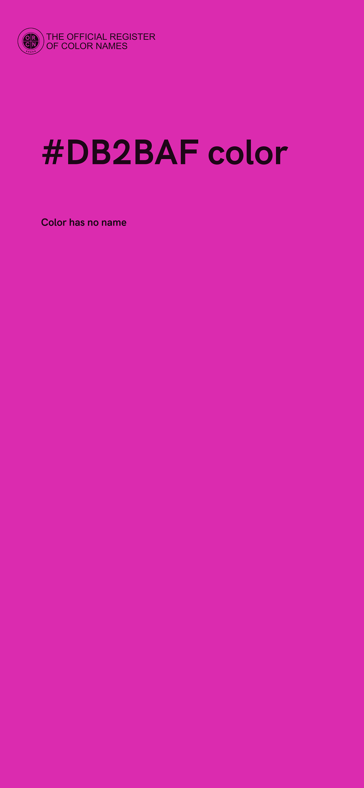 The digital color HEX #DB2BAF belongs to the Rose Color Family featuring High Saturation (Saturation Family) and Light (Brightness Family).