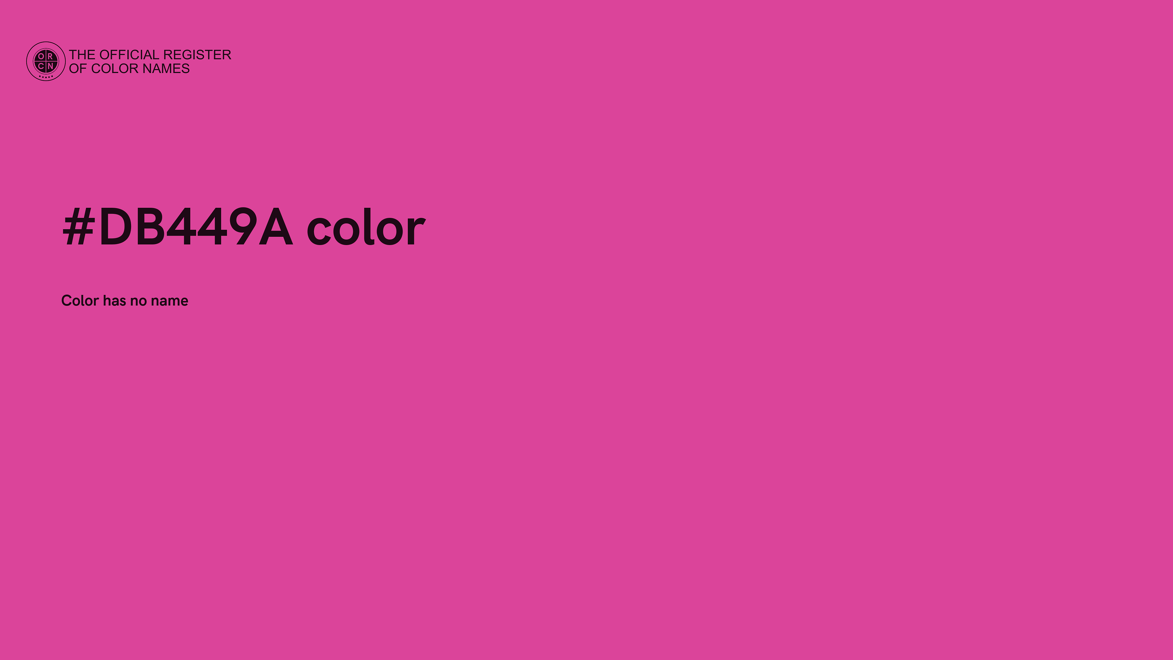 For printing in non digital world, #DB449A is represented in CMYK as 0 Cyan, 59 Magenta, 25 Yellow, and 14 Black (Key) (C:0 M:59 Y:25 K:14).