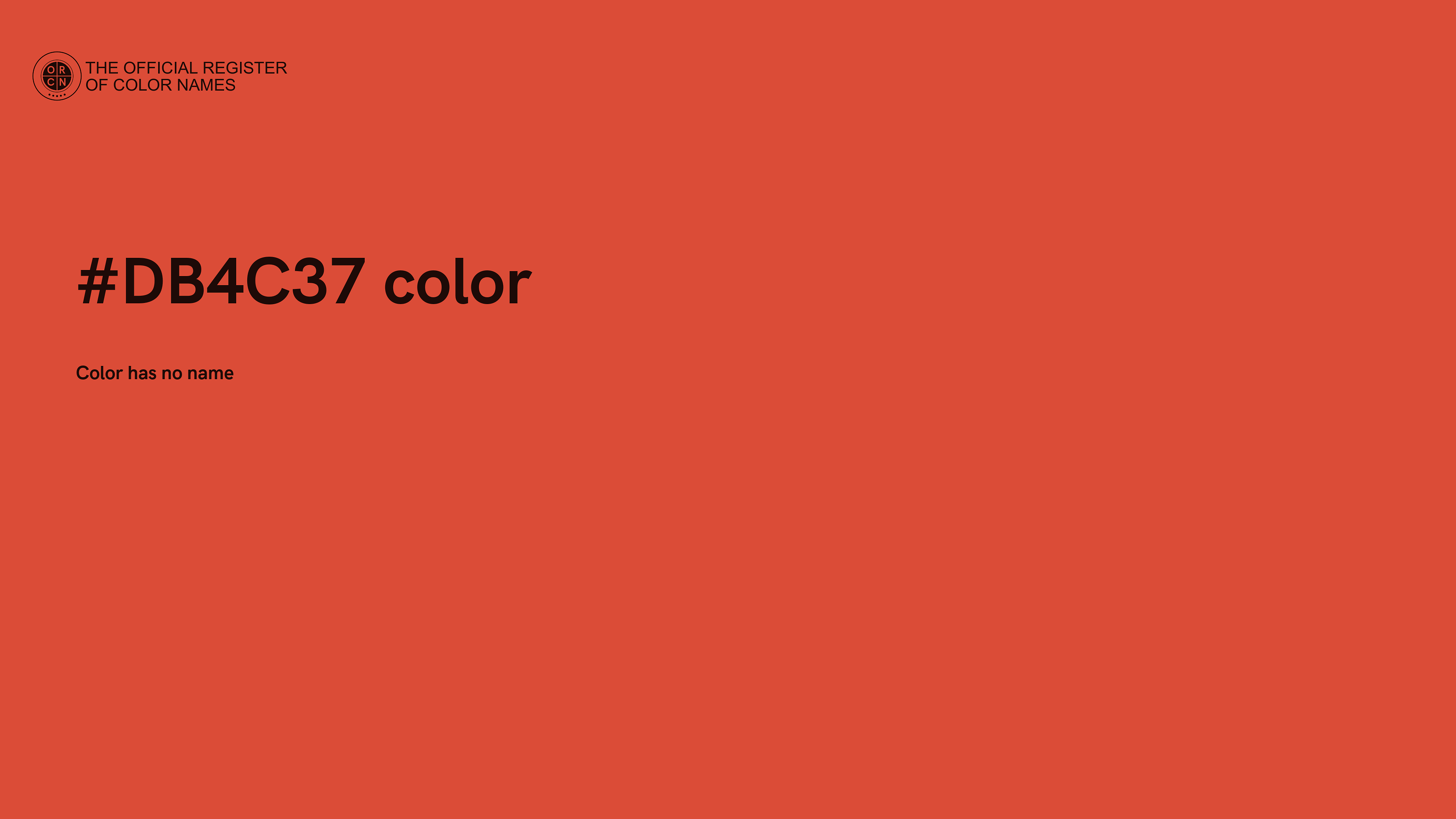 The digital color HEX #DB4C37 belongs to the Red Color Family featuring High Saturation (Saturation Family) and Light (Brightness Family).