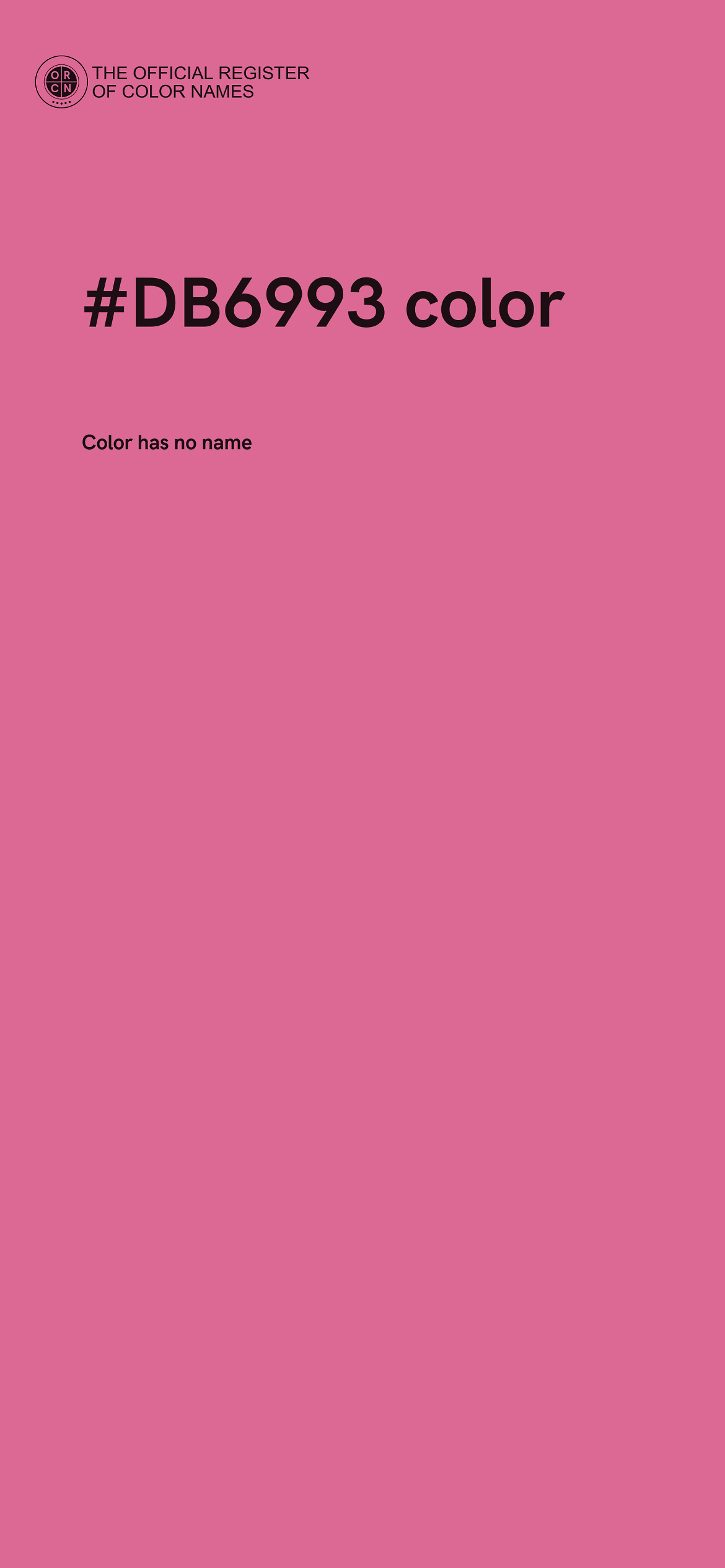 For printing in non digital world, #DB6993 is represented in CMYK as 0 Cyan, 45 Magenta, 28 Yellow, and 14 Black (Key) (C:0 M:45 Y:28 K:14).