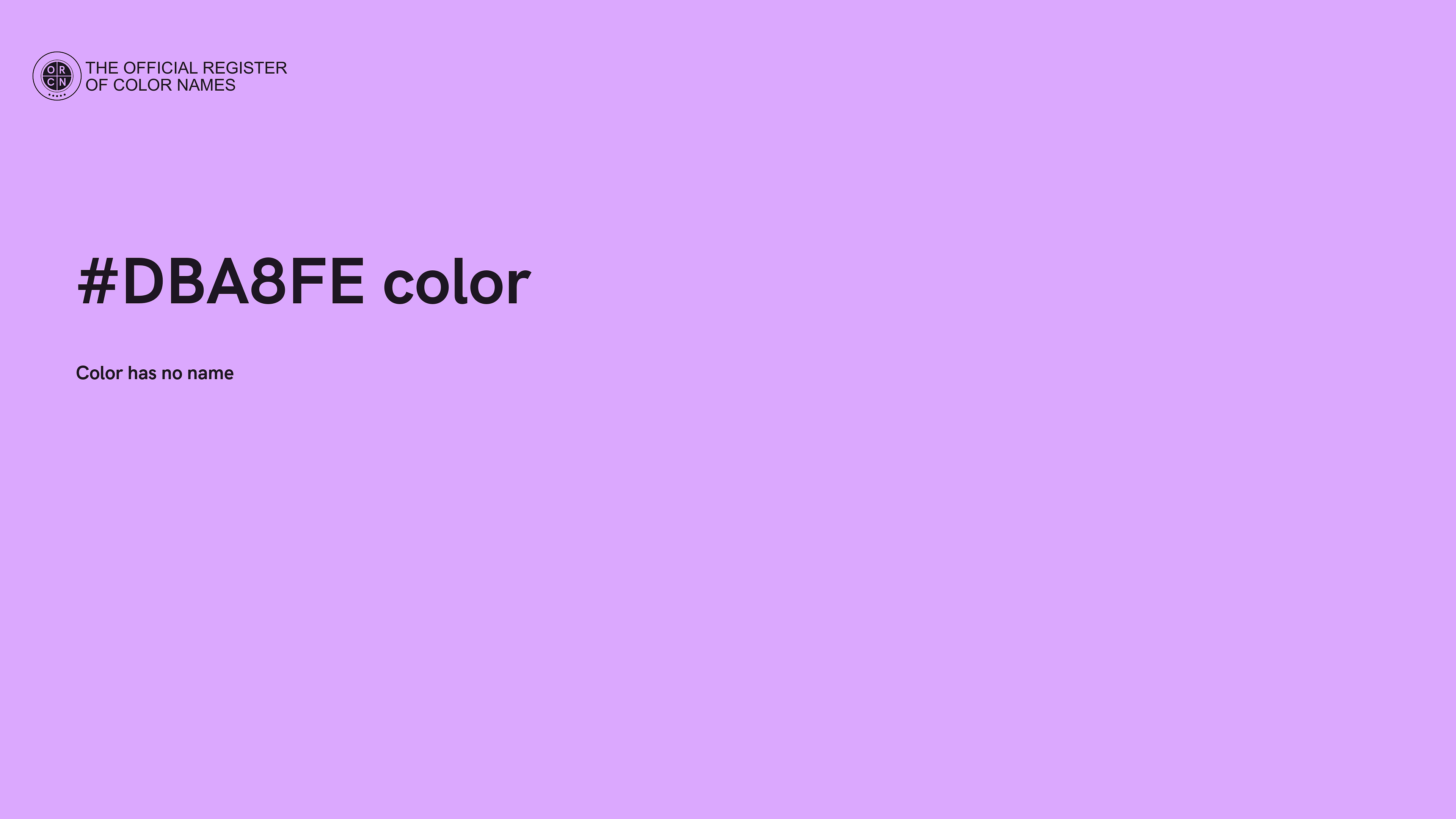 The digital color HEX #DBA8FE belongs to the Violet Color Family featuring Full Saturation (Saturation Family) and Very Light (Brightness Family).
