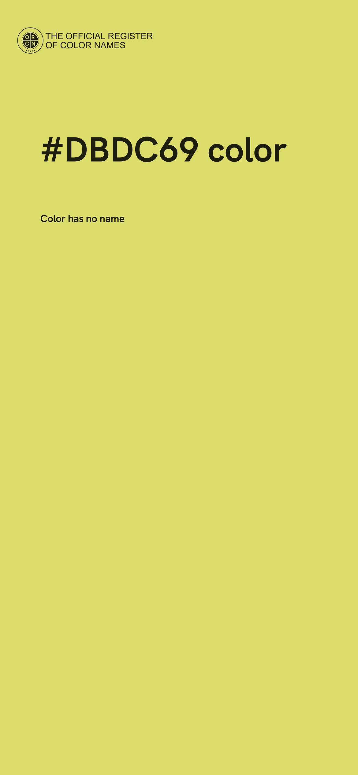 For printing in non digital world, #DBDC69 is represented in CMYK as 0 Cyan, 0 Magenta, 45 Yellow, and 14 Black (Key) (C:0 M:0 Y:45 K:14).
