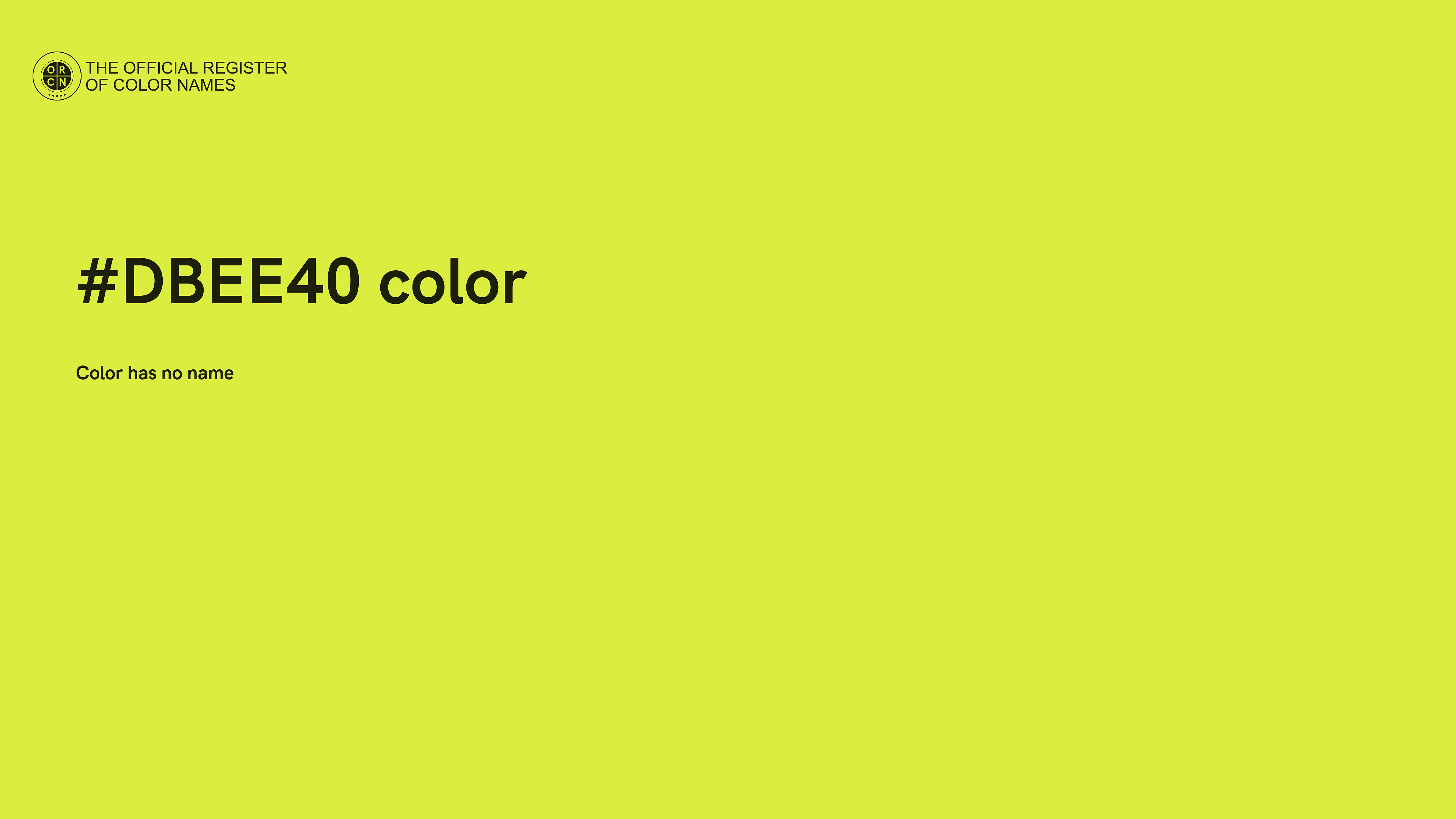 For printing in non digital world, #DBEE40 is represented in CMYK as 7 Cyan, 0 Magenta, 68 Yellow, and 7 Black (Key) (C:7 M:0 Y:68 K:7).