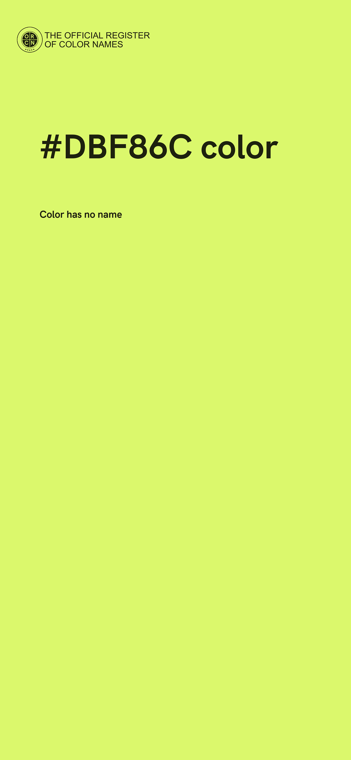 The digital color HEX #DBF86C belongs to the Yellow Color Family featuring Full Saturation (Saturation Family) and Very Light (Brightness Family).