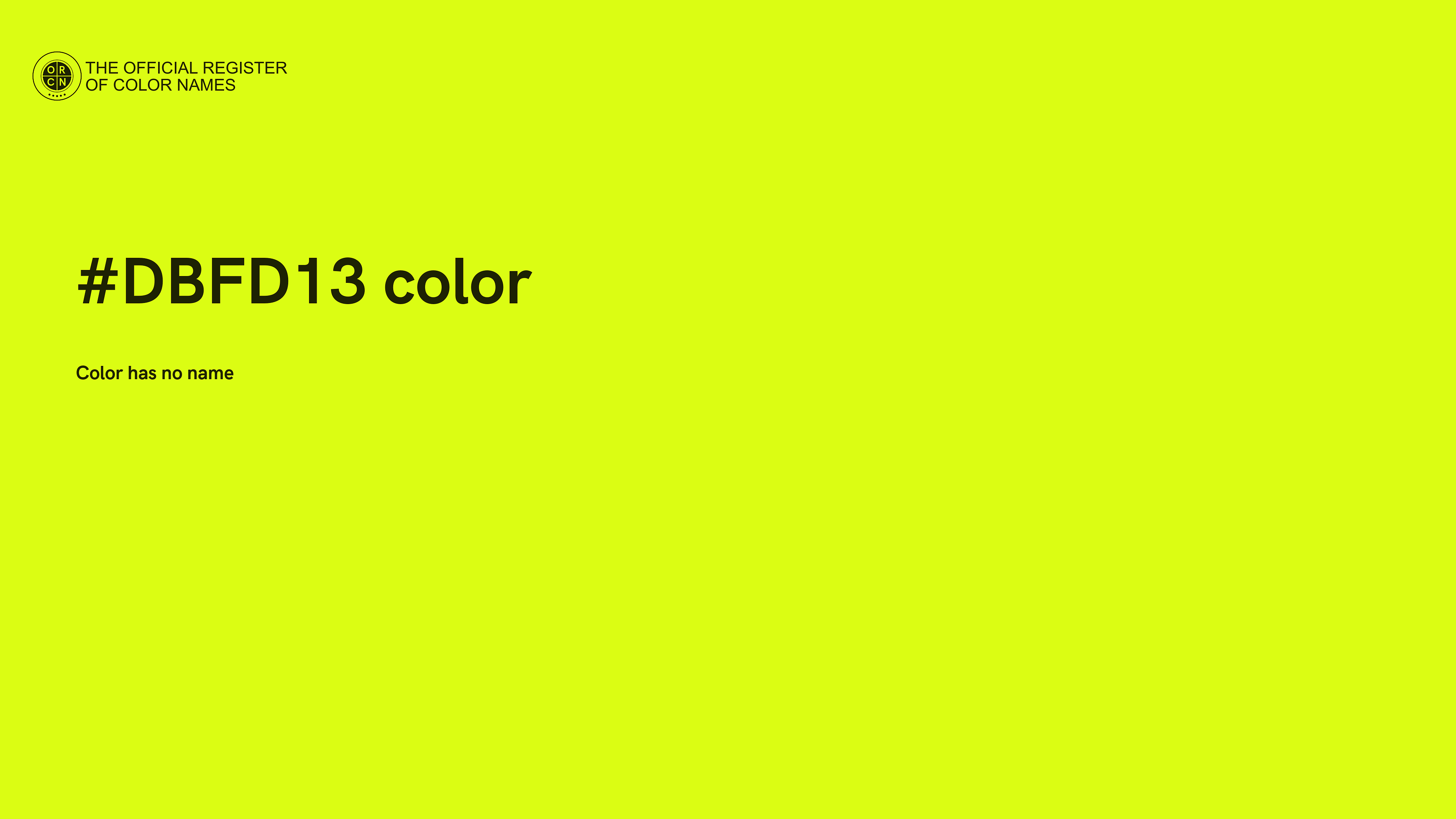 For printing in non digital world, #DBFD13 is represented in CMYK as 13 Cyan, 0 Magenta, 92 Yellow, and 1 Black (Key) (C:13 M:0 Y:92 K:1).
