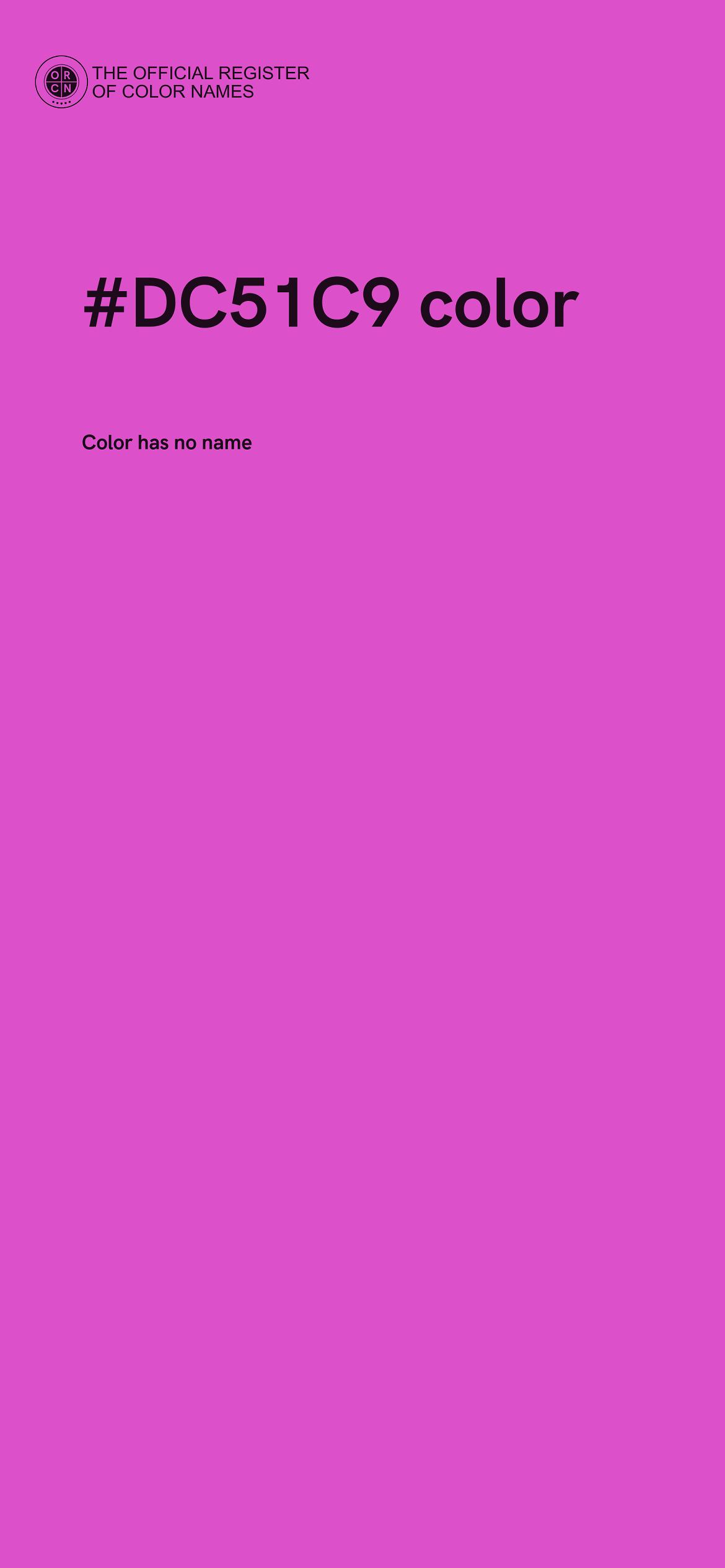For printing in non digital world, #DC51C9 is represented in CMYK as 0 Cyan, 55 Magenta, 7 Yellow, and 14 Black (Key) (C:0 M:55 Y:7 K:14).