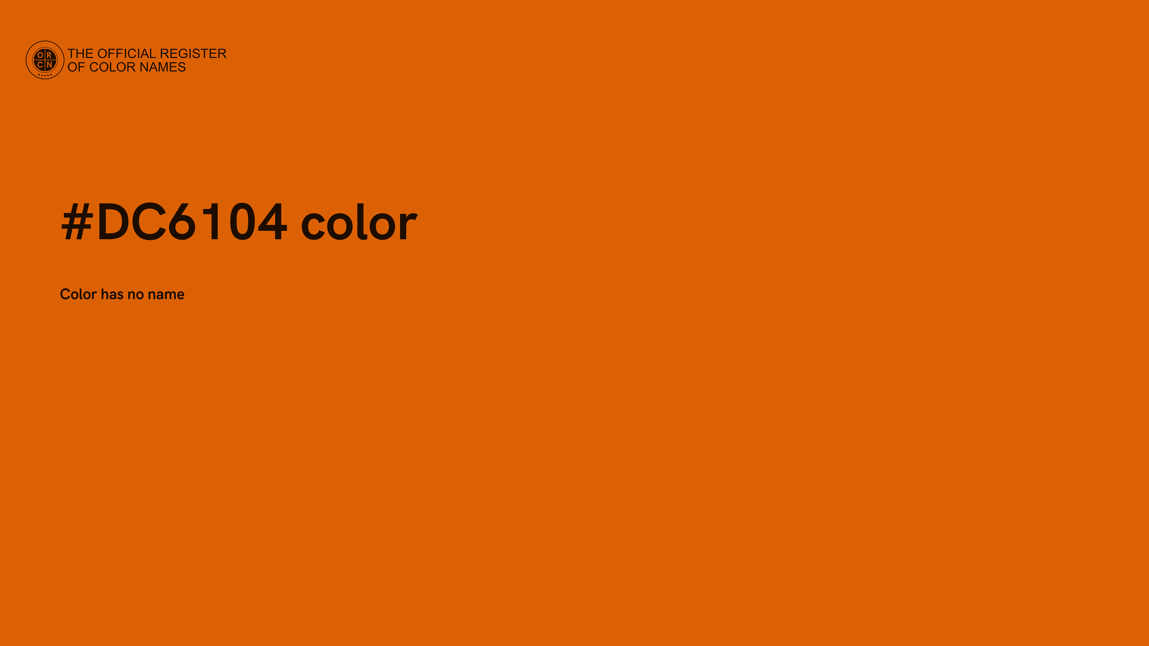 The digital color HEX #DC6104 belongs to the Orange Color Family featuring Full Saturation (Saturation Family) and Light (Brightness Family).