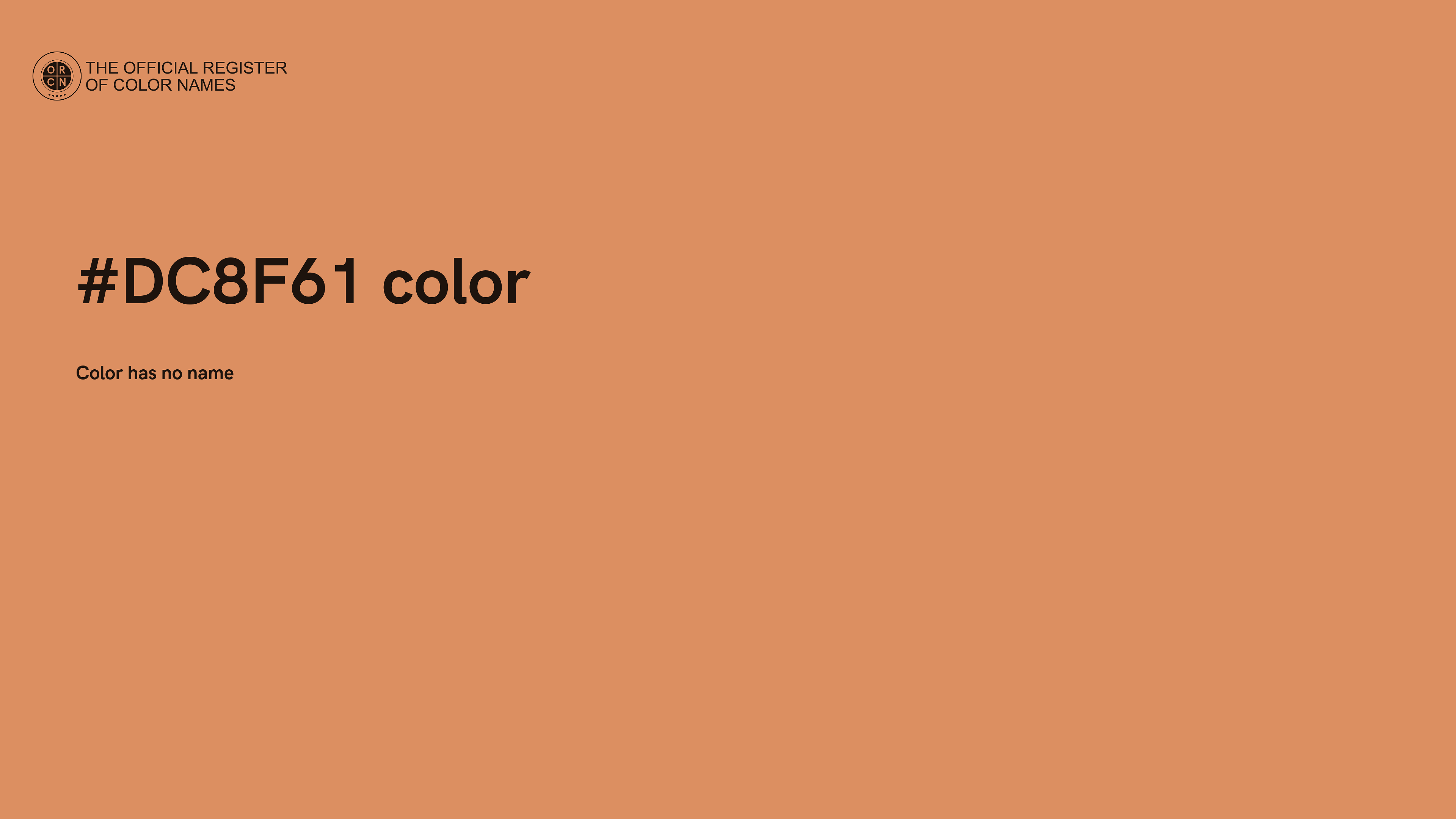 The digital color HEX #DC8F61 belongs to the Orange Color Family featuring High Saturation (Saturation Family) and Very Light (Brightness Family).