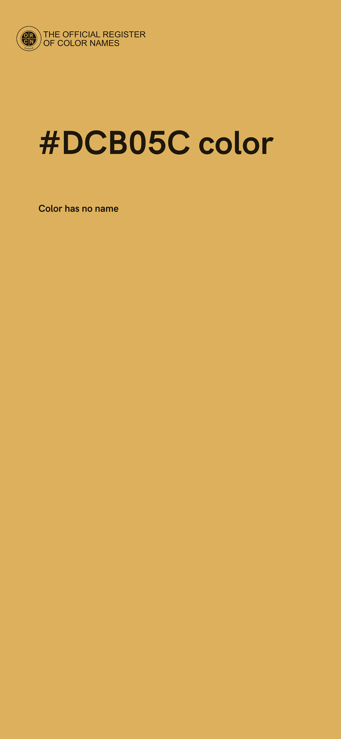 For printing in non digital world, #DCB05C is represented in CMYK as 0 Cyan, 17 Magenta, 50 Yellow, and 14 Black (Key) (C:0 M:17 Y:50 K:14).