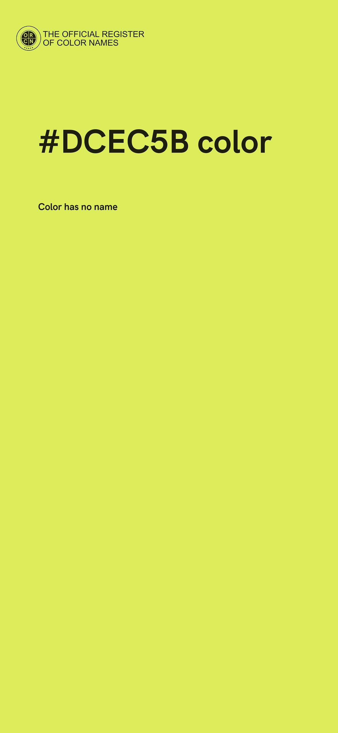 The digital color HEX #DCEC5B belongs to the Yellow Color Family featuring High Saturation (Saturation Family) and Very Light (Brightness Family).