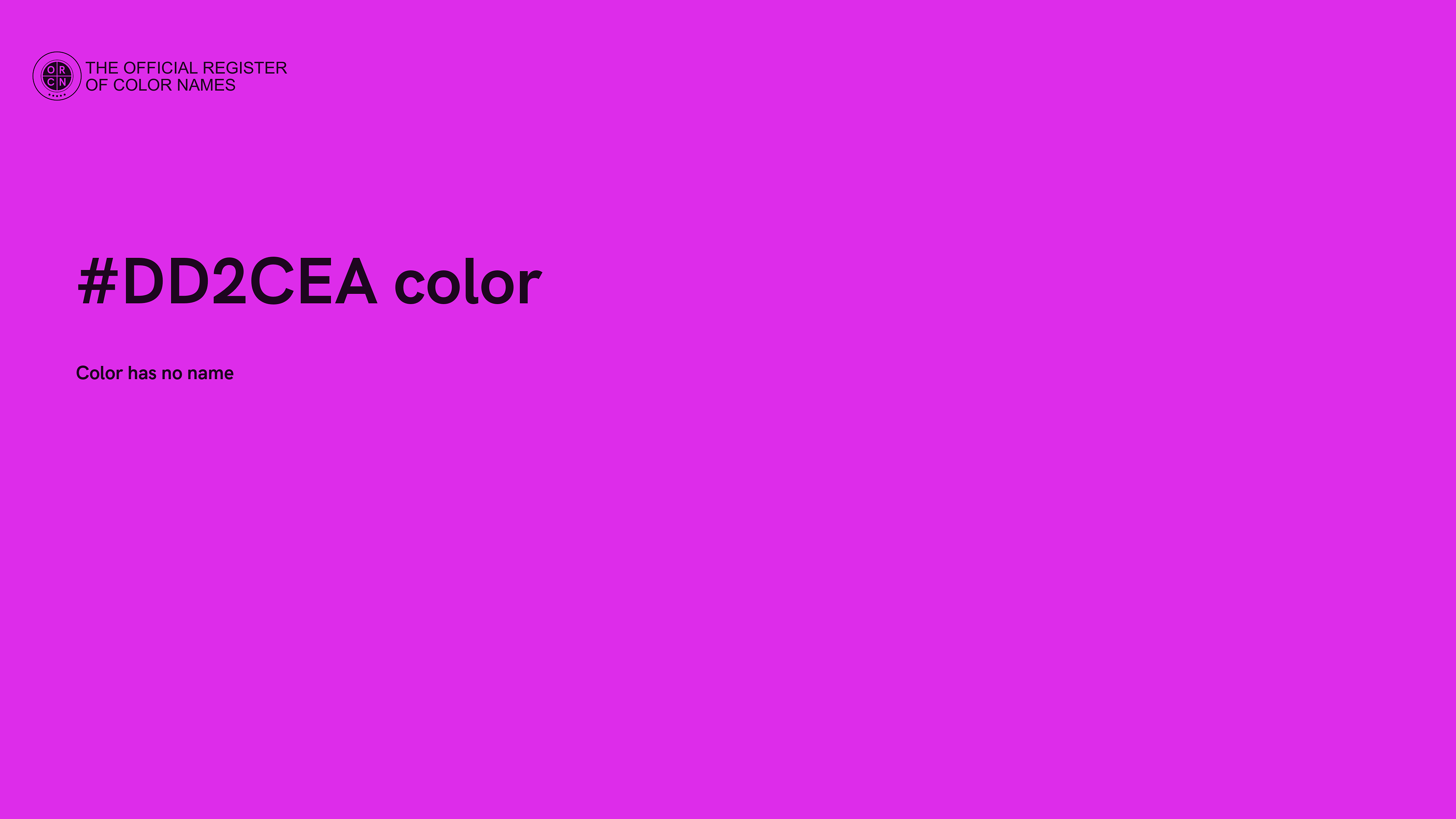 For printing in non digital world, #DD2CEA is represented in CMYK as 5 Cyan, 75 Magenta, 0 Yellow, and 8 Black (Key) (C:5 M:75 Y:0 K:8).