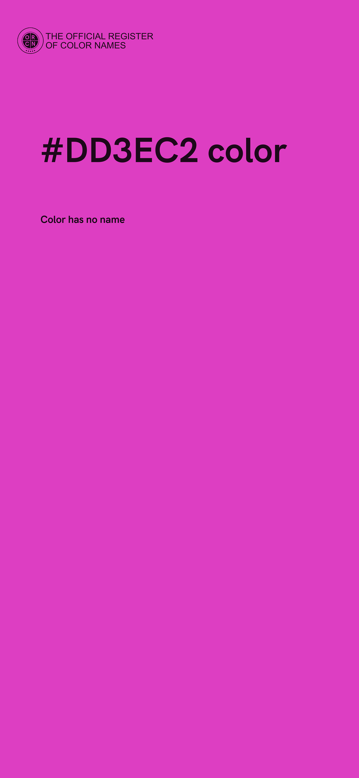 The digital color HEX #DD3EC2 belongs to the Magenta Color Family featuring High Saturation (Saturation Family) and Light (Brightness Family).