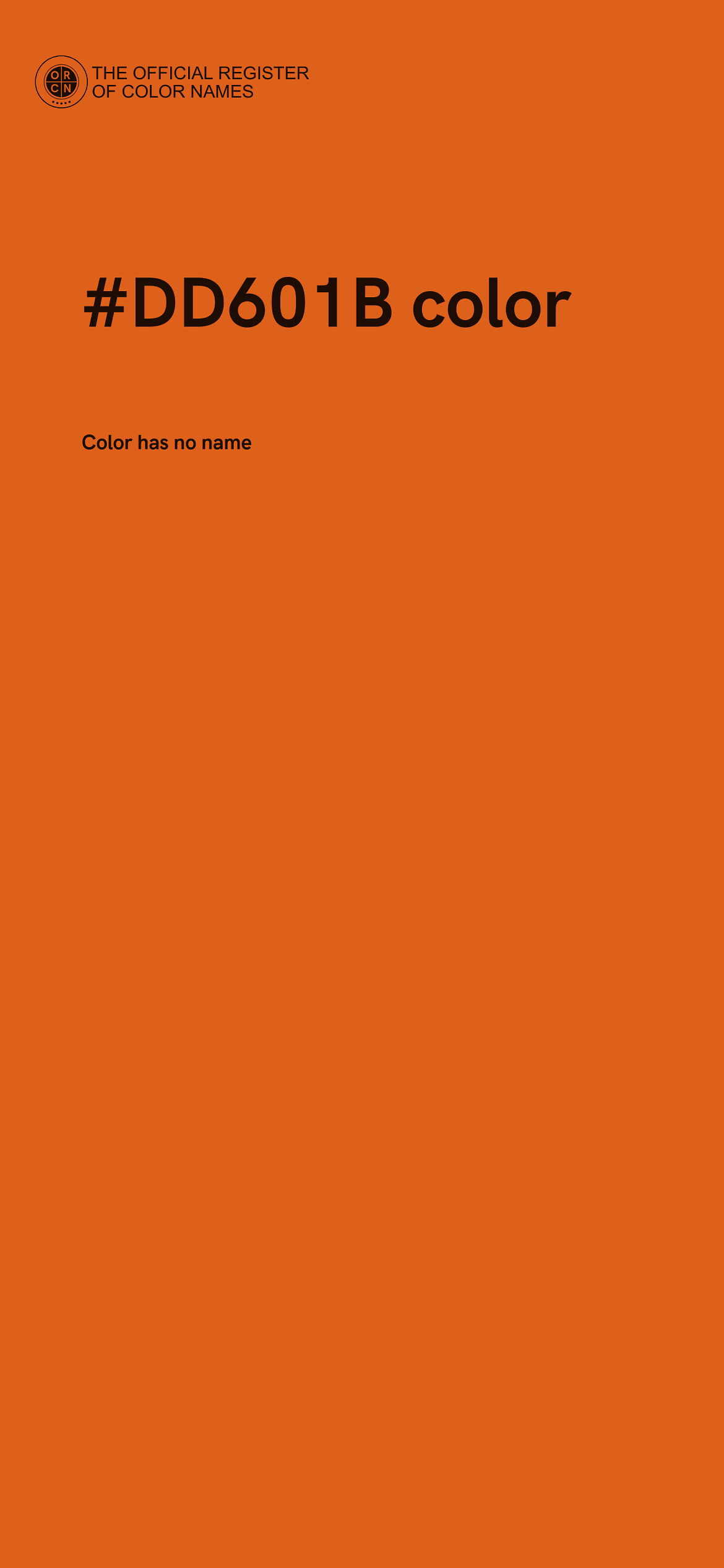 The digital color HEX #DD601B belongs to the Orange Color Family featuring High Saturation (Saturation Family) and Light (Brightness Family).