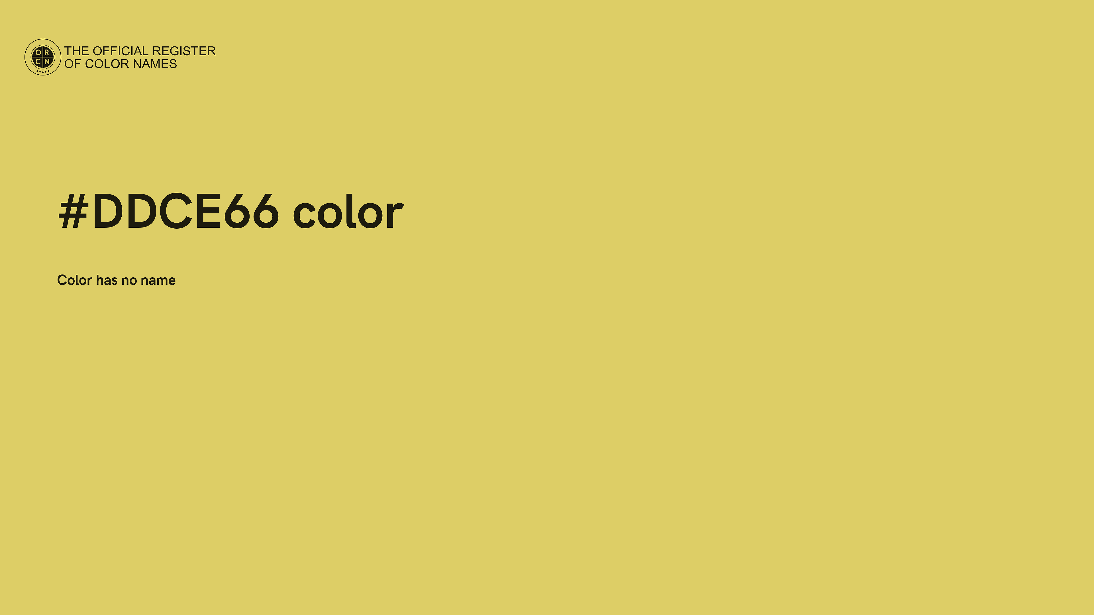 For printing in non digital world, #DDCE66 is represented in CMYK as 0 Cyan, 6 Magenta, 47 Yellow, and 13 Black (Key) (C:0 M:6 Y:47 K:13).