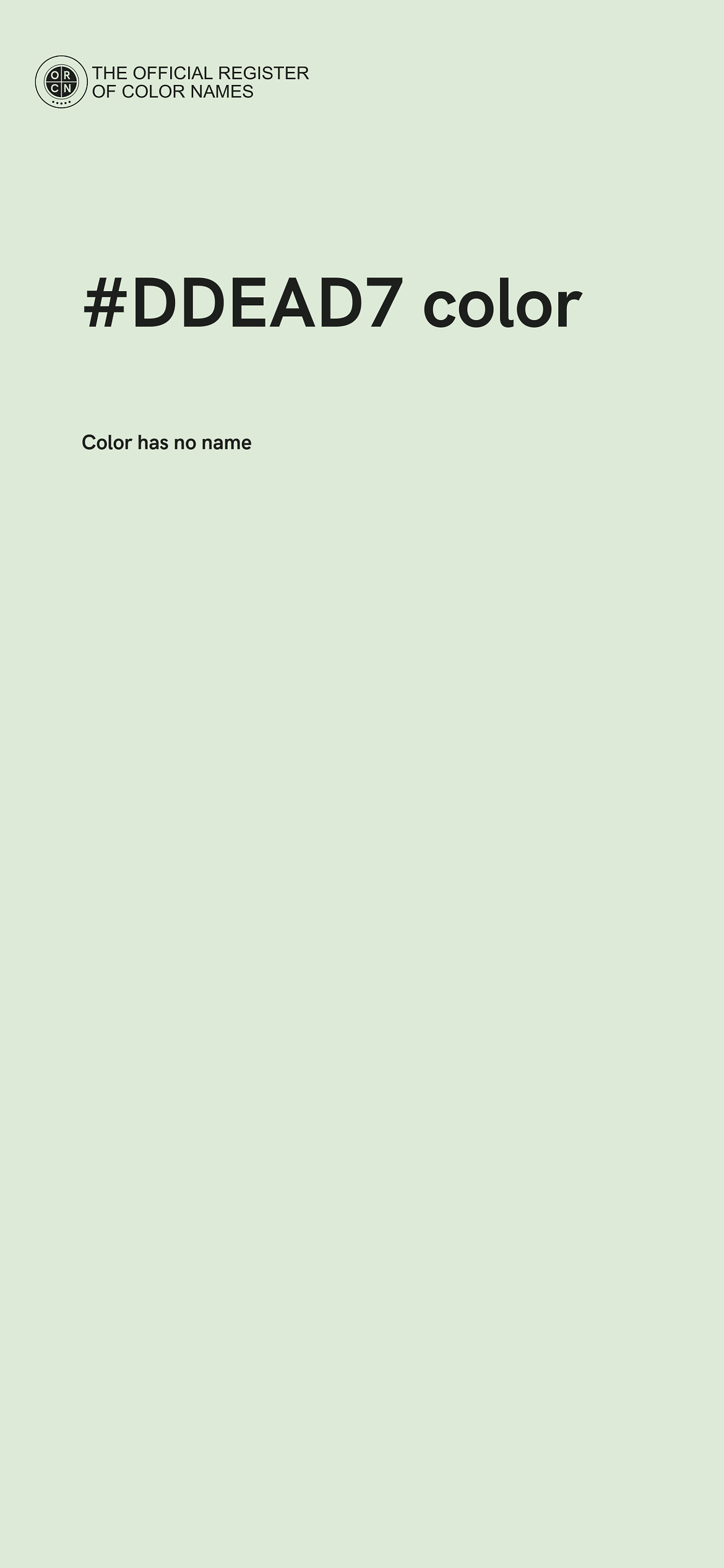 For printing in non digital world, #DDEAD7 is represented in CMYK as 5 Cyan, 0 Magenta, 7 Yellow, and 8 Black (Key) (C:5 M:0 Y:7 K:8).