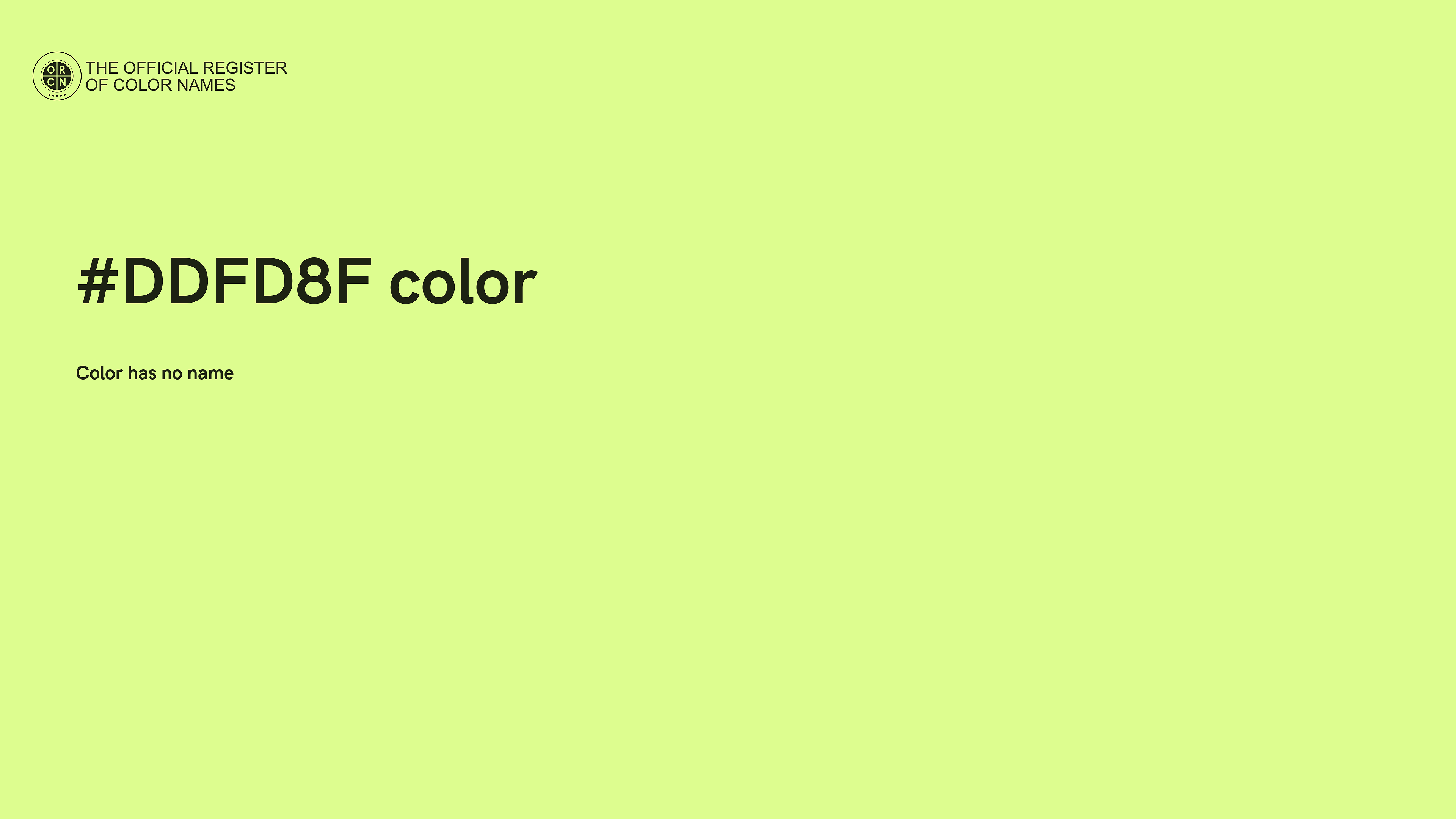 The digital color HEX #DDFD8F belongs to the Chartreuse Color Family featuring Full Saturation (Saturation Family) and Very Light (Brightness Family).