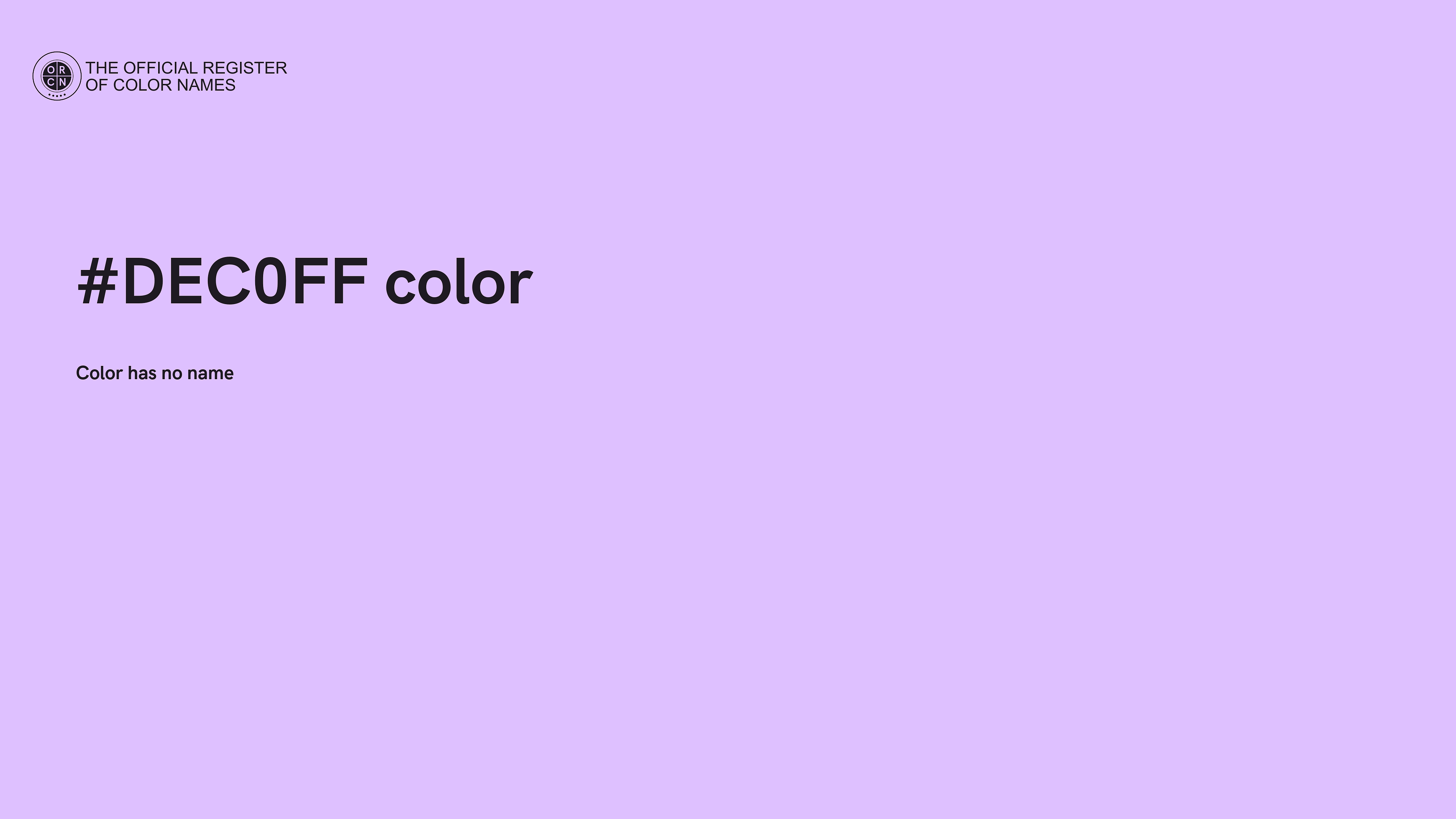 For printing in non digital world, #DEC0FF is represented in CMYK as 13 Cyan, 25 Magenta, 0 Yellow, and 0 Black (Key) (C:13 M:25 Y:0 K:0).