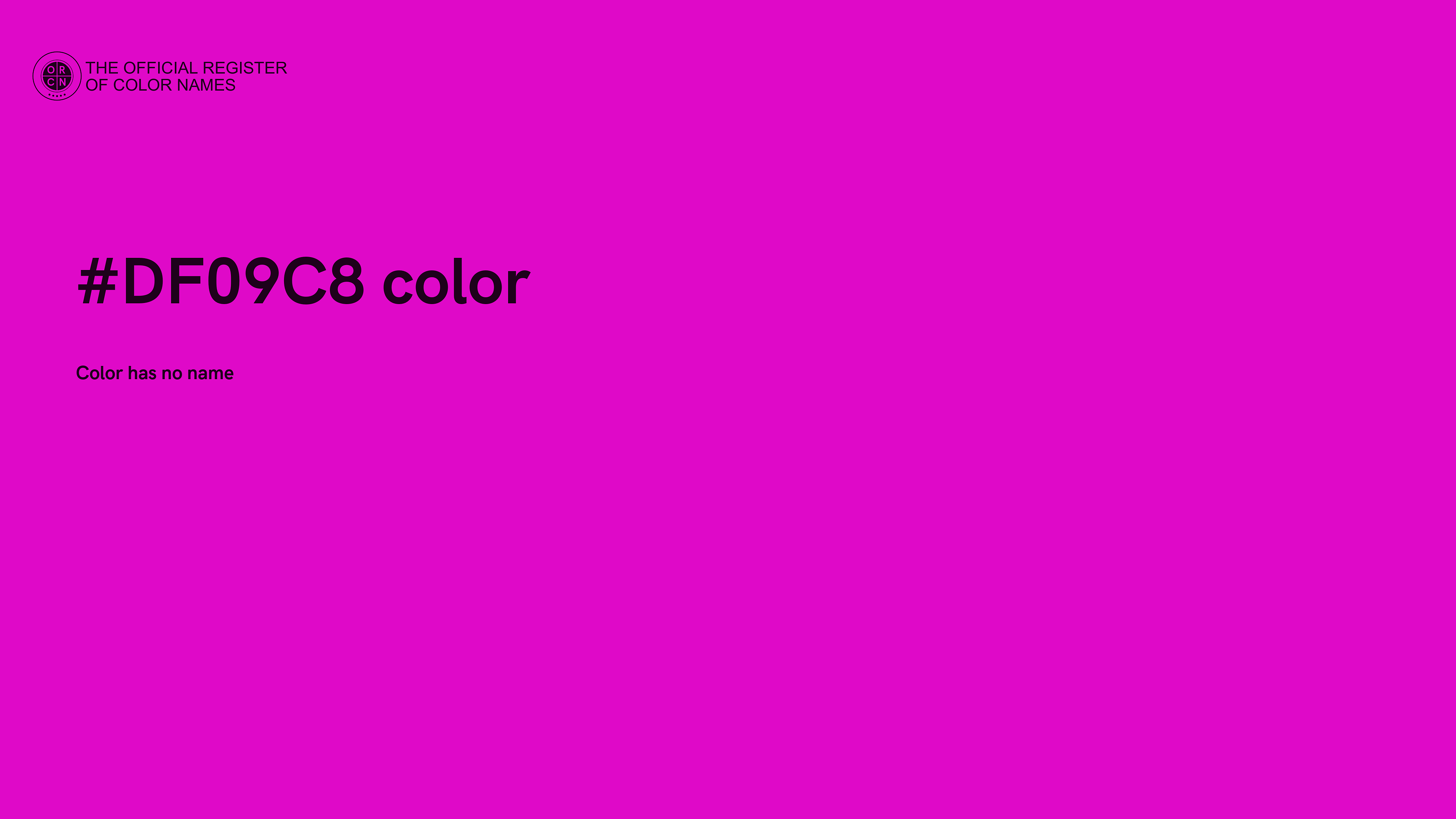 For printing in non digital world, #DF09C8 is represented in CMYK as 0 Cyan, 84 Magenta, 9 Yellow, and 13 Black (Key) (C:0 M:84 Y:9 K:13).