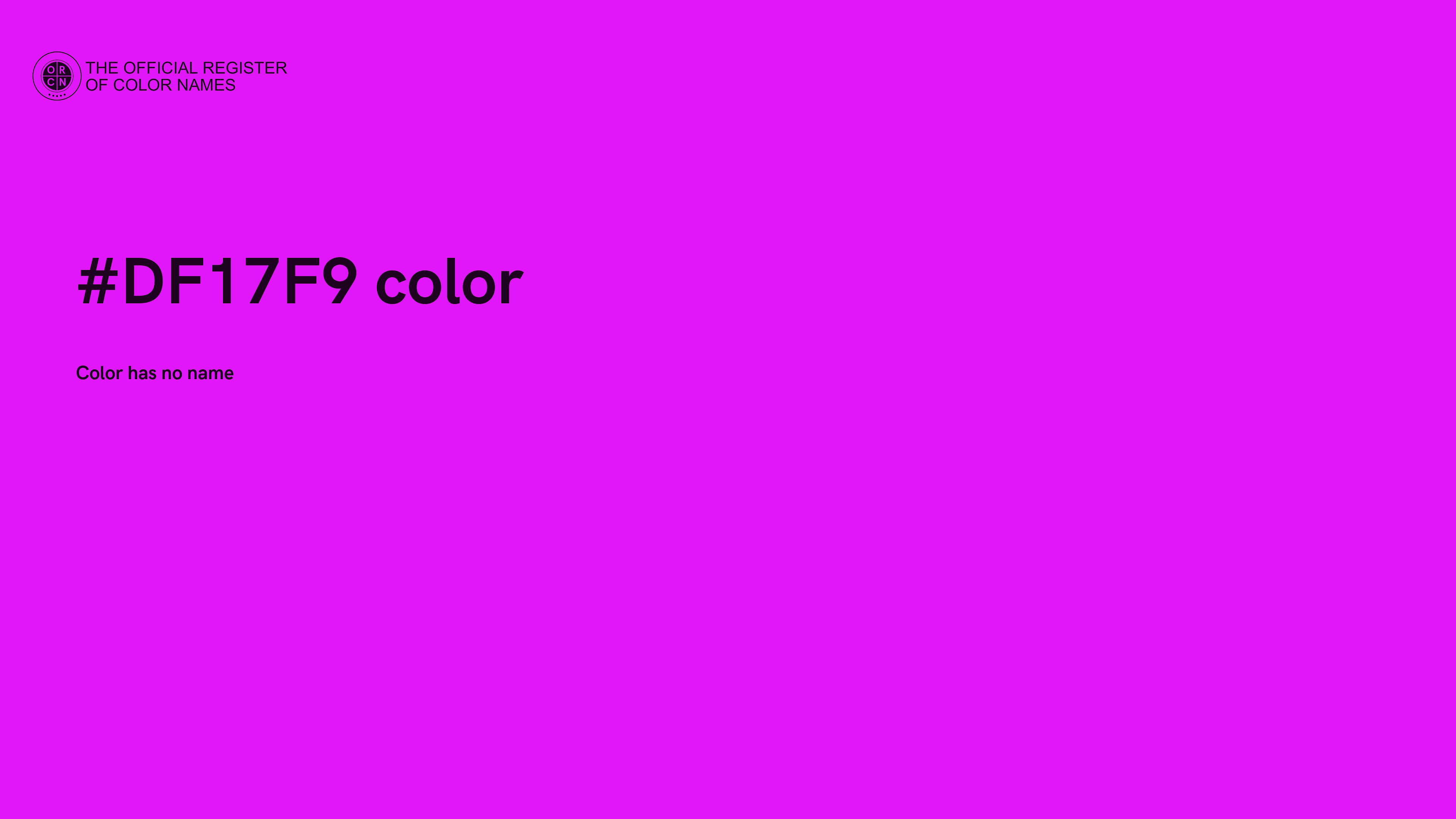 For printing in non digital world, #DF17F9 is represented in CMYK as 10 Cyan, 89 Magenta, 0 Yellow, and 2 Black (Key) (C:10 M:89 Y:0 K:2).