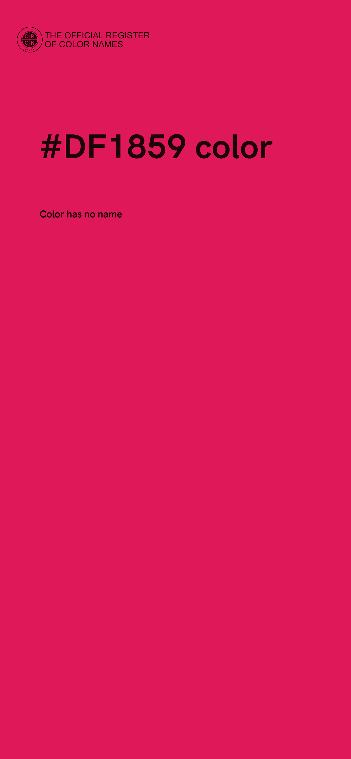 For printing in non digital world, #DF1859 is represented in CMYK as 0 Cyan, 78 Magenta, 53 Yellow, and 13 Black (Key) (C:0 M:78 Y:53 K:13).
