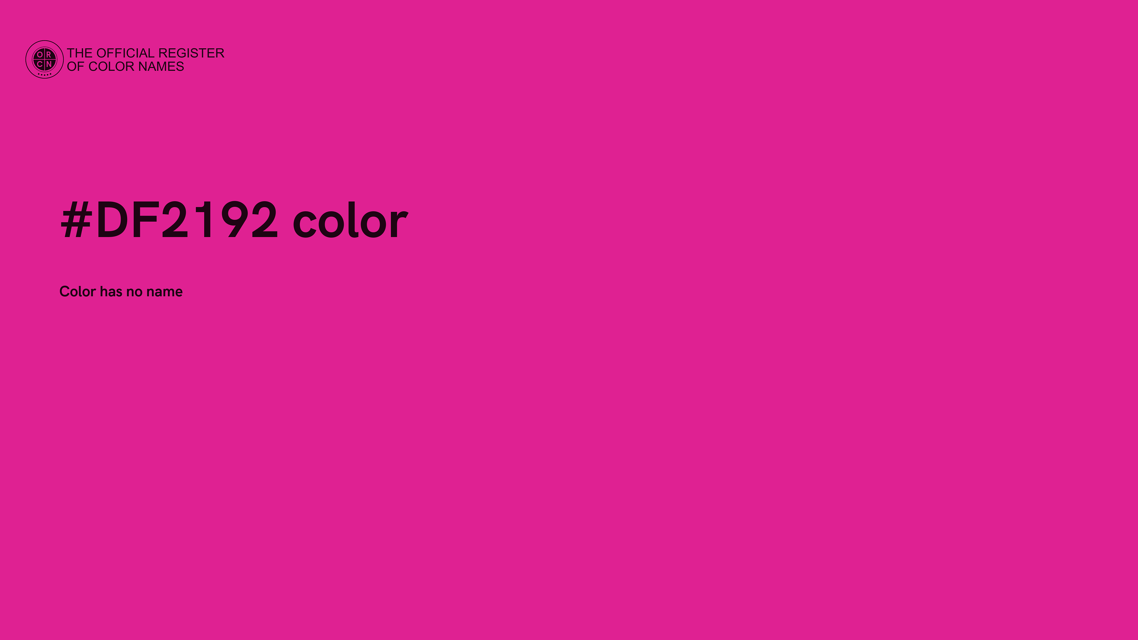 For printing in non digital world, #DF2192 is represented in CMYK as 0 Cyan, 75 Magenta, 30 Yellow, and 13 Black (Key) (C:0 M:75 Y:30 K:13).