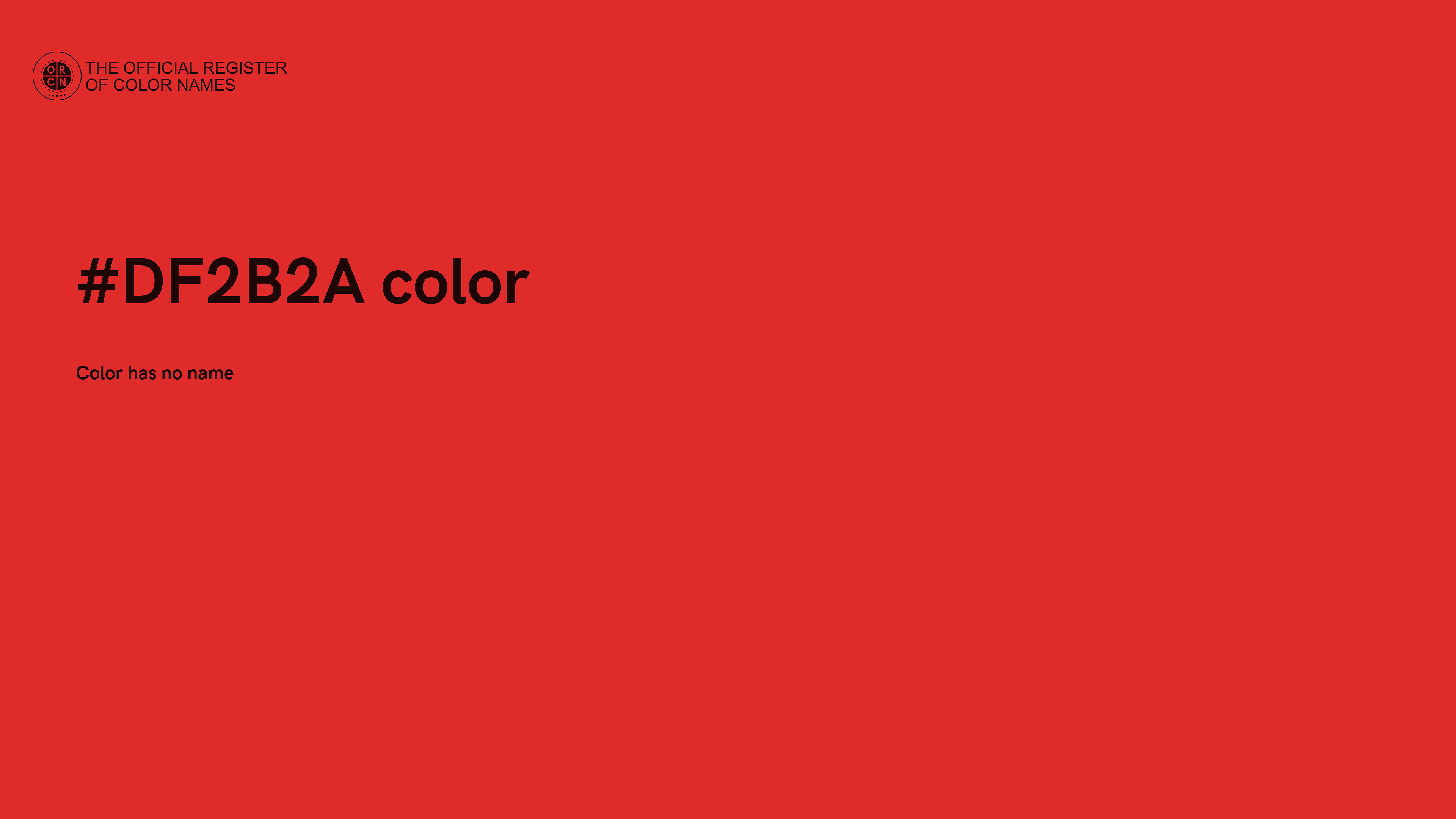 For printing in non digital world, #DF2B2A is represented in CMYK as 0 Cyan, 71 Magenta, 71 Yellow, and 13 Black (Key) (C:0 M:71 Y:71 K:13).