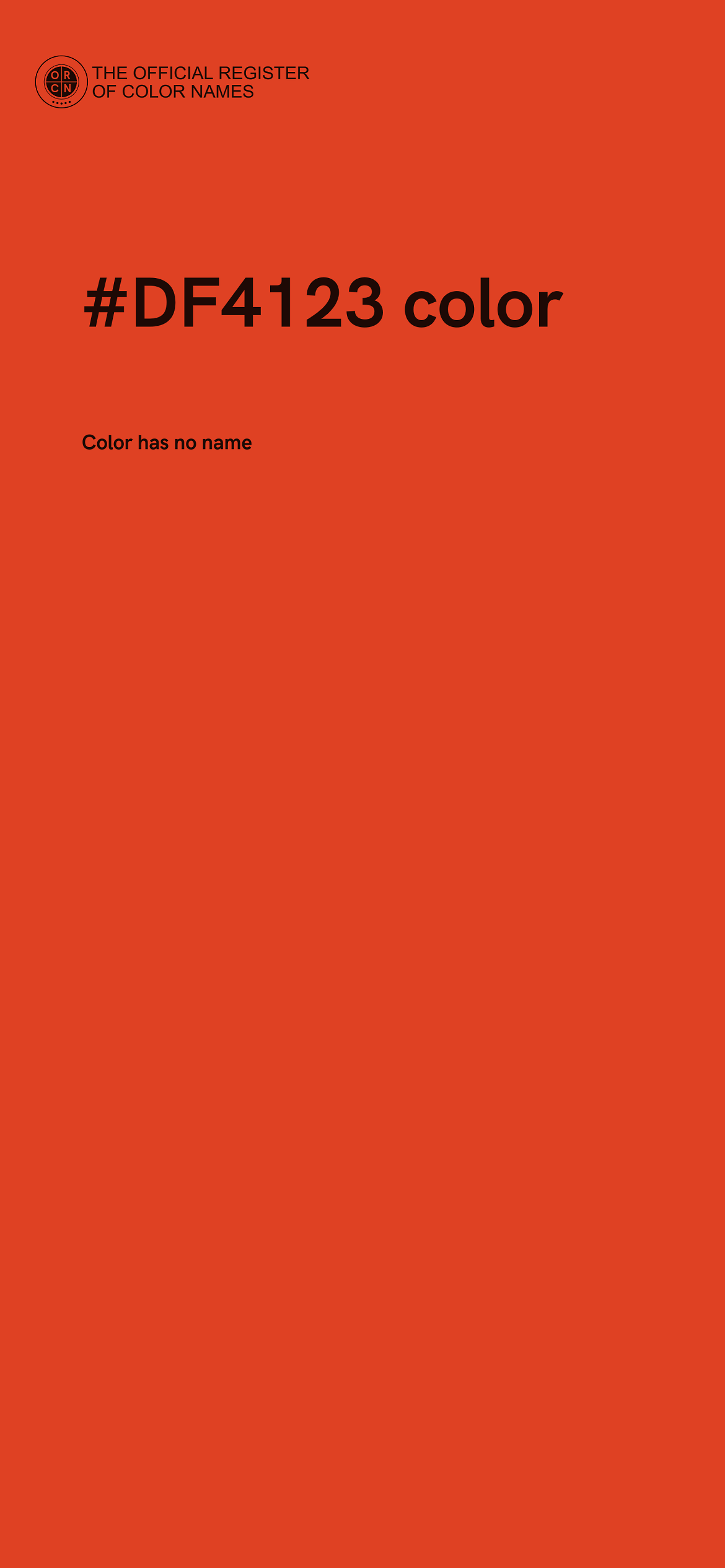 The digital color HEX #DF4123 belongs to the Red Color Family featuring High Saturation (Saturation Family) and Light (Brightness Family).