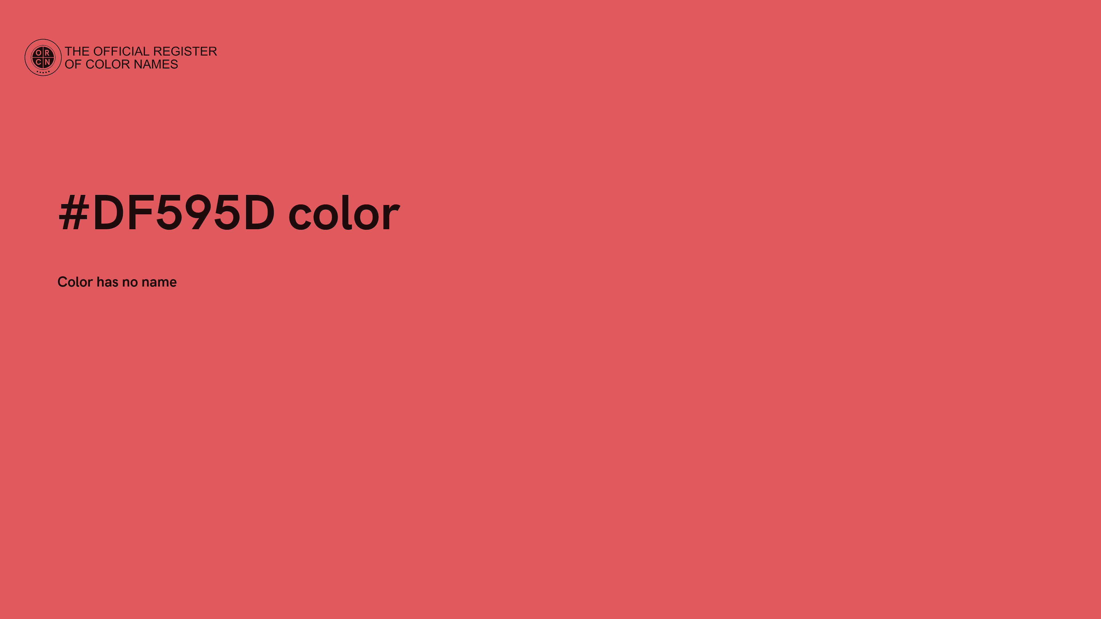 The digital color HEX #DF595D belongs to the Red Color Family featuring High Saturation (Saturation Family) and Very Light (Brightness Family).