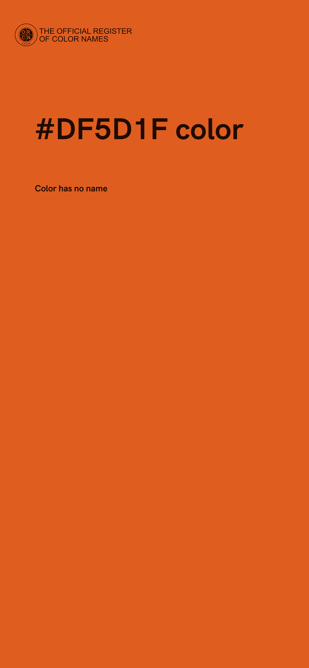 The digital color HEX #DF5D1F belongs to the Orange Color Family featuring High Saturation (Saturation Family) and Light (Brightness Family).
