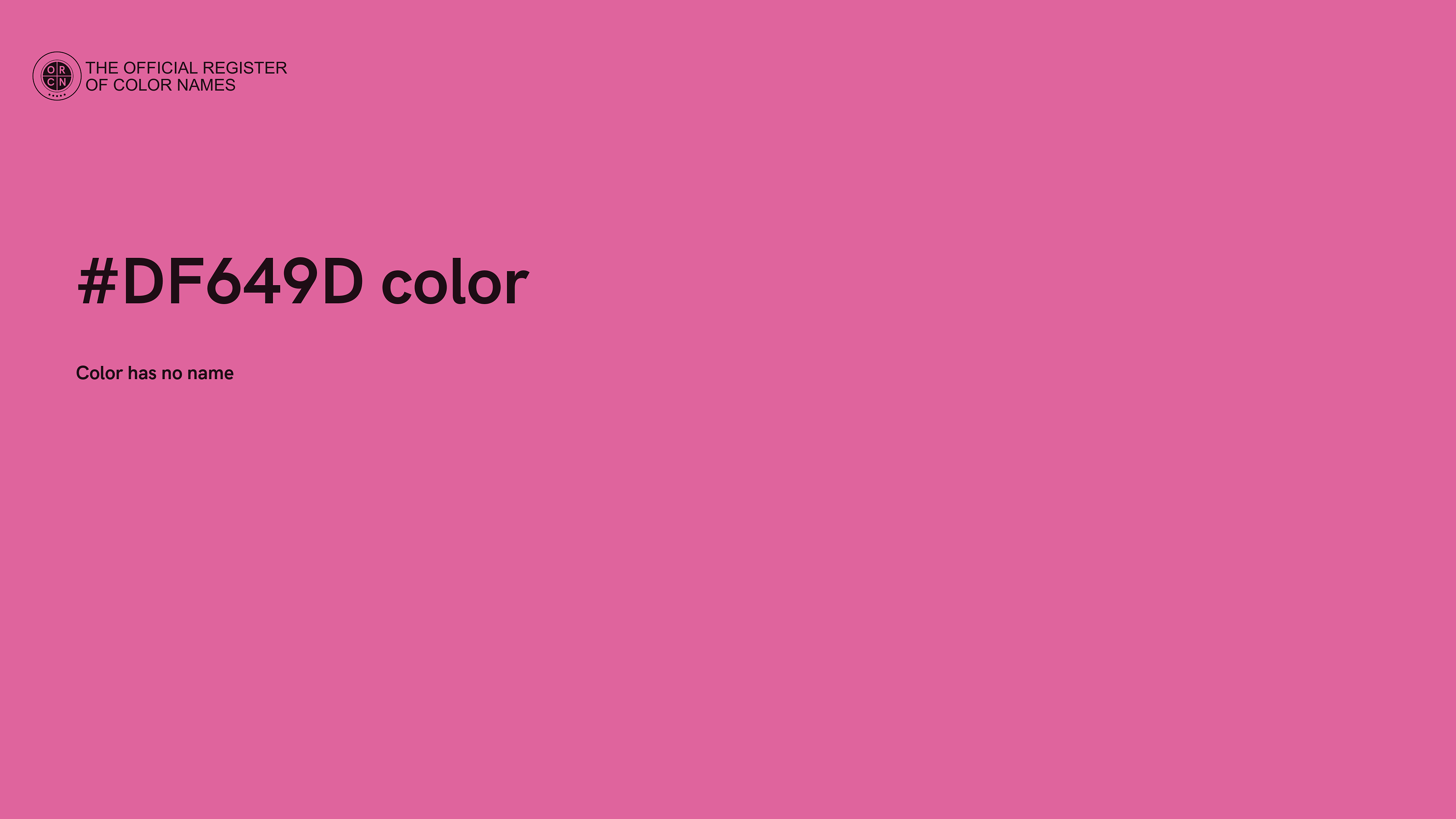 For printing in non digital world, #DF649D is represented in CMYK as 0 Cyan, 48 Magenta, 26 Yellow, and 13 Black (Key) (C:0 M:48 Y:26 K:13).