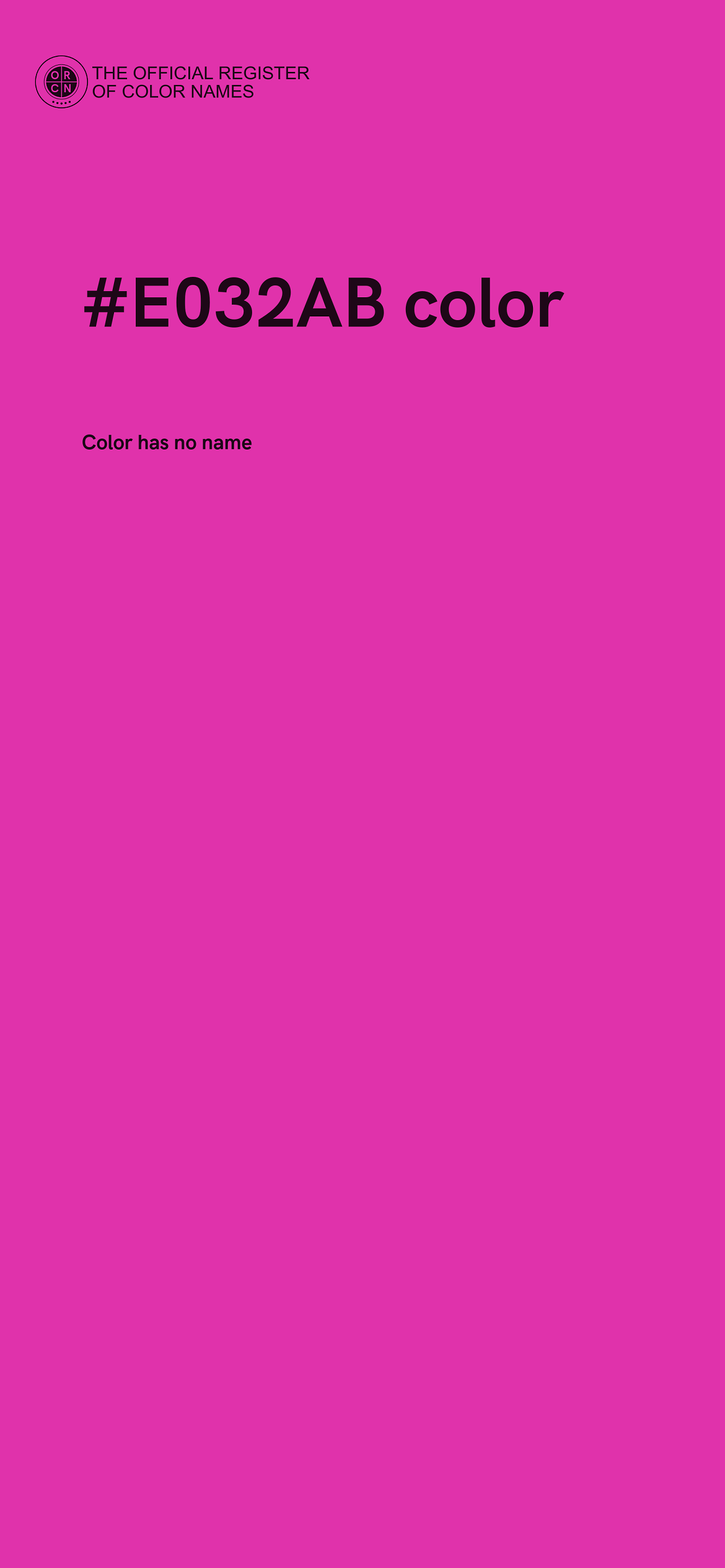 The digital color HEX #E032AB belongs to the Rose Color Family featuring High Saturation (Saturation Family) and Light (Brightness Family).