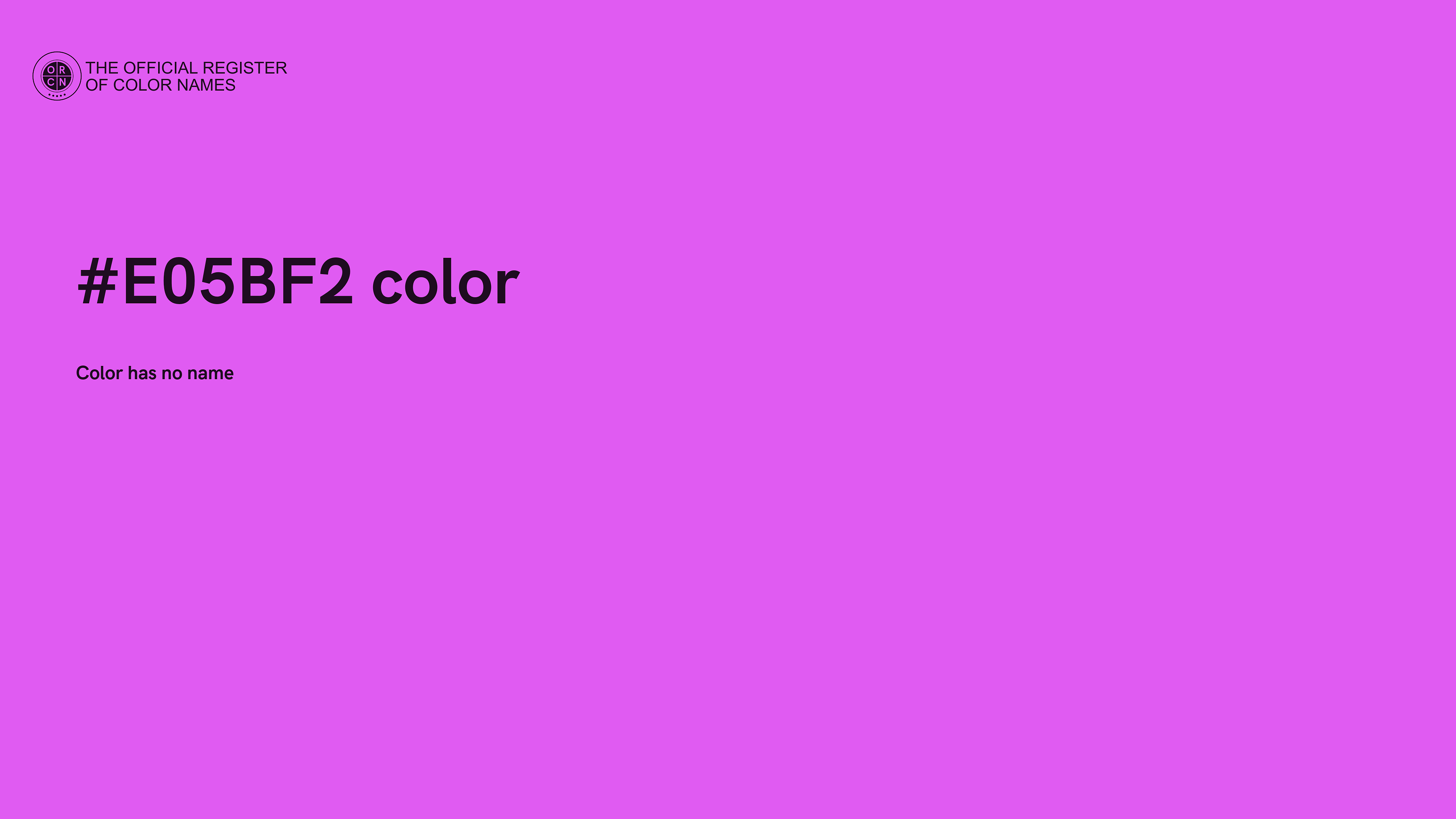For printing in non digital world, #E05BF2 is represented in CMYK as 7 Cyan, 59 Magenta, 0 Yellow, and 5 Black (Key) (C:7 M:59 Y:0 K:5).