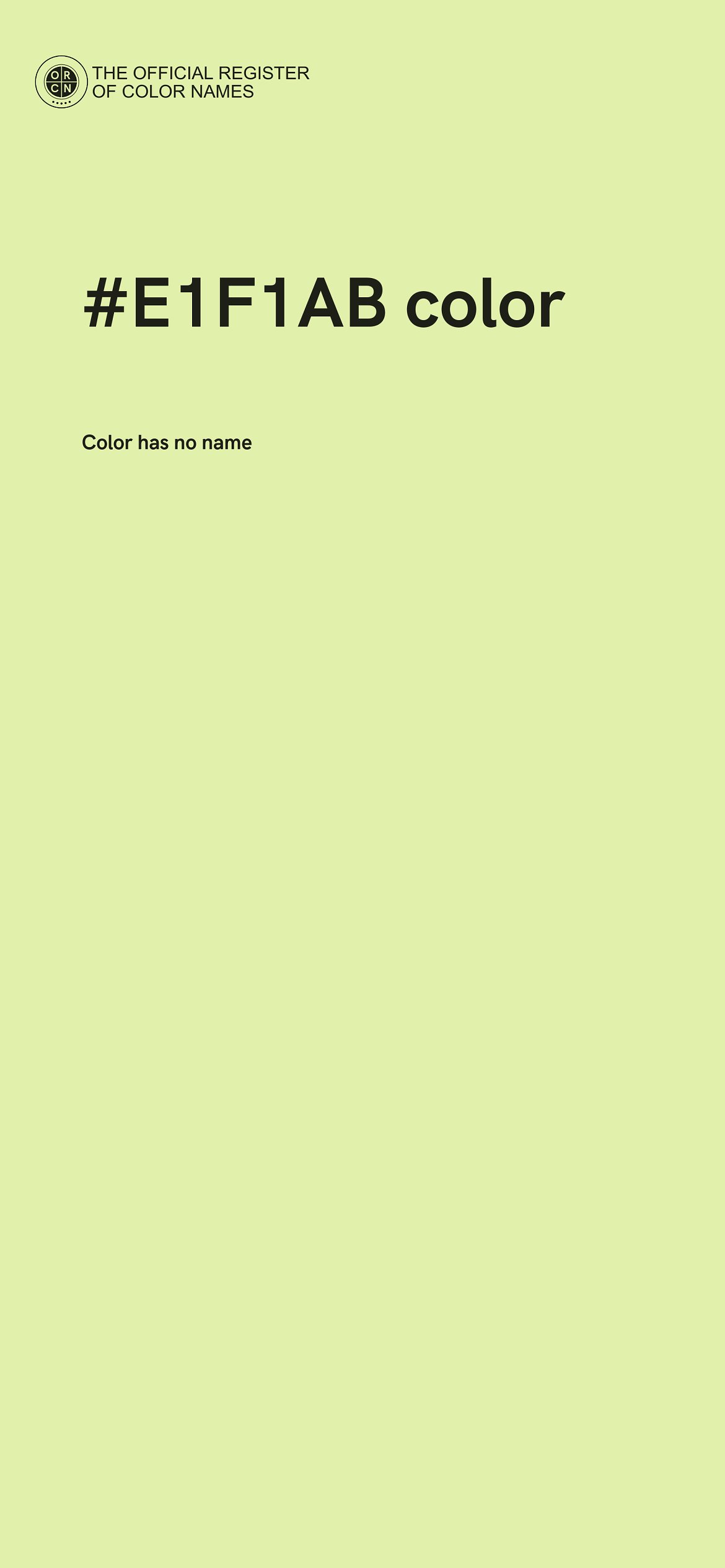 The digital color HEX #E1F1AB belongs to the Yellow Color Family featuring High Saturation (Saturation Family) and Very Light (Brightness Family).