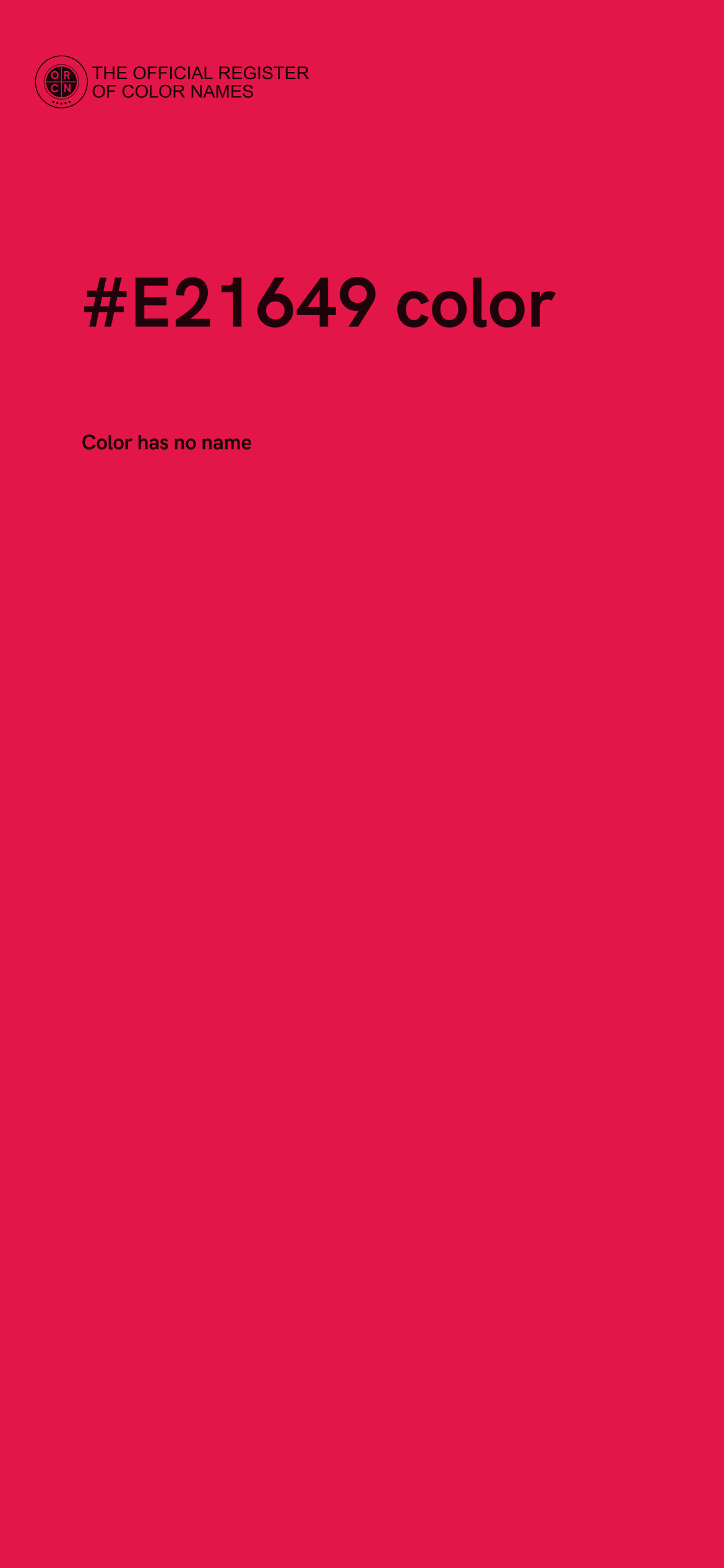 The digital color HEX #E21649 belongs to the Red Color Family featuring High Saturation (Saturation Family) and Light (Brightness Family).